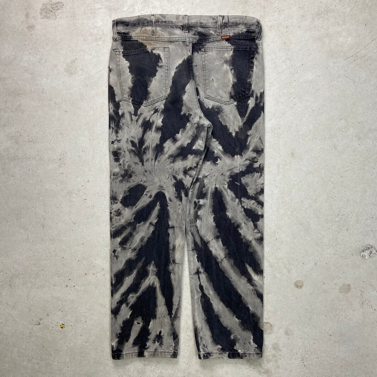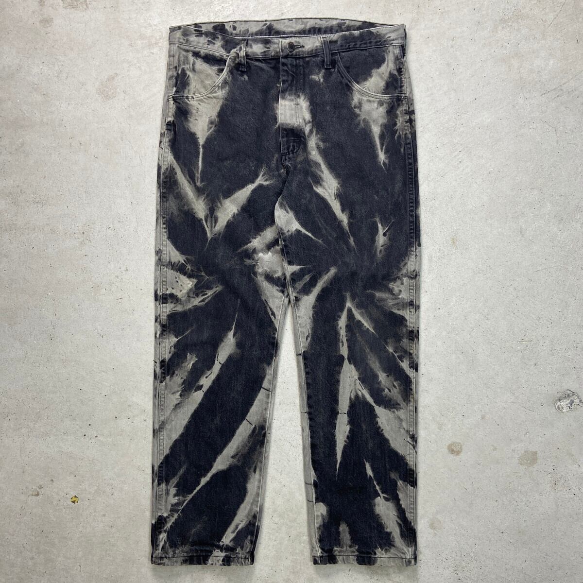 【original】リメイク RUSTLER ラスター タイダイ デニムパンツ メンズW36 古着 ストレートデニム ブラック×アイボリー【デニムパンツ】/ブラック