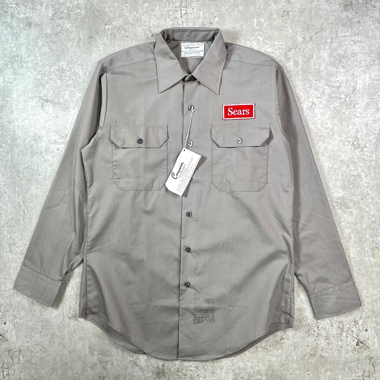 DEAD STOCK NOS 70年代 USA製 Conqueror シアーズ SEARS 企業ロゴワッペン ワークシャツ メンズM 古着 1974 70s アメカジ ヴィンテージ VINTAGE デッドストック【長袖シャツ】/グレー