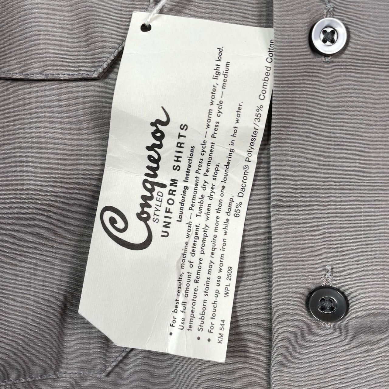 ■ DEAD STOCK NOS 70年代 USA製 Conqueror シアーズ SEARS 企業ロゴワッペン ワークシャツ メンズM 古着 1974 70s アメカジ ヴィンテージ VINTAGE デッドストック【長袖シャツ】/グレー