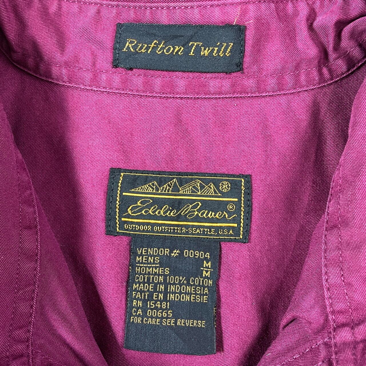 80〜90年代 Eddie Bauer エディーバウアー RutonTwill 長袖 コットンシャツ メンズL相当 古着 80s 90s ヴィンテージ VINTAGE 黒タグ【長袖シャツ】/ワインレッド