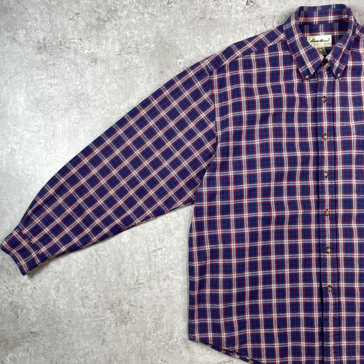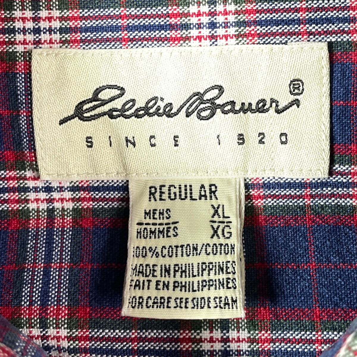 ■90年代 Eddie Bauer エディーバウアー マドラスチェックシャツ メンズXL 古着 90s ヴィンテージ VINTAGE 白タグ ボタンダウン レッド ネイビー ホワイト グリーン【長袖シャツ】/マルチカラー