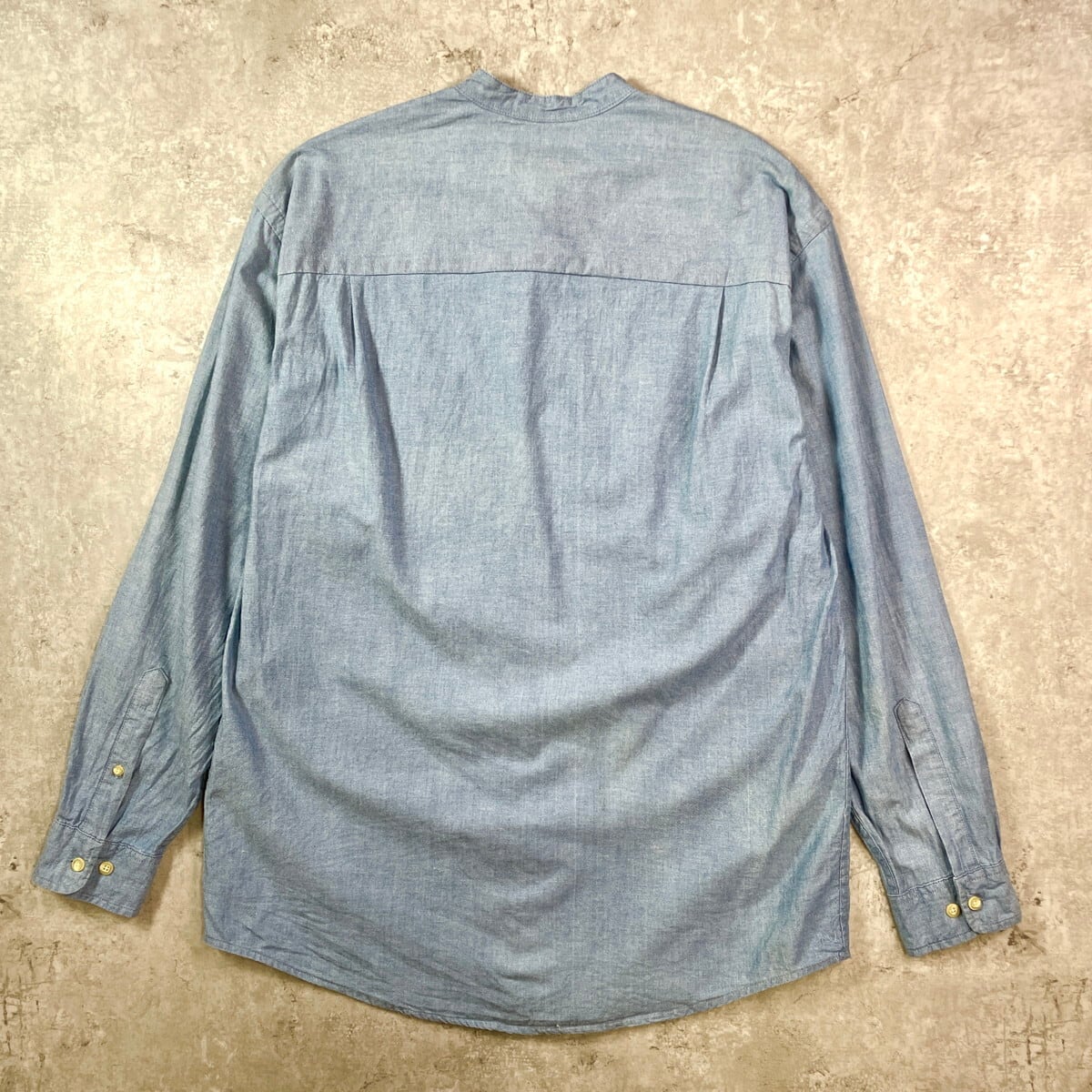 90年代 Eddie Bauer エディーバウアー ノーカラーシャツ メンズL相当 古着 90s ヴィンテージ VINTAGE 白タグ ライトブルー 水色【長袖シャツ】/ブルー
