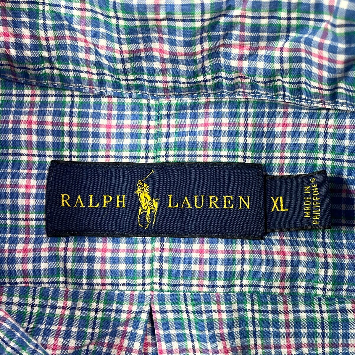 Ralph Lauren ラルフローレン オーバーチェックシャツ メンズXL 古着 B.D ボタンダウンシャツ ワンポイントロゴ刺繍 ブルー ピンク ホワイト グリーン【長袖シャツ】/マルチカラー