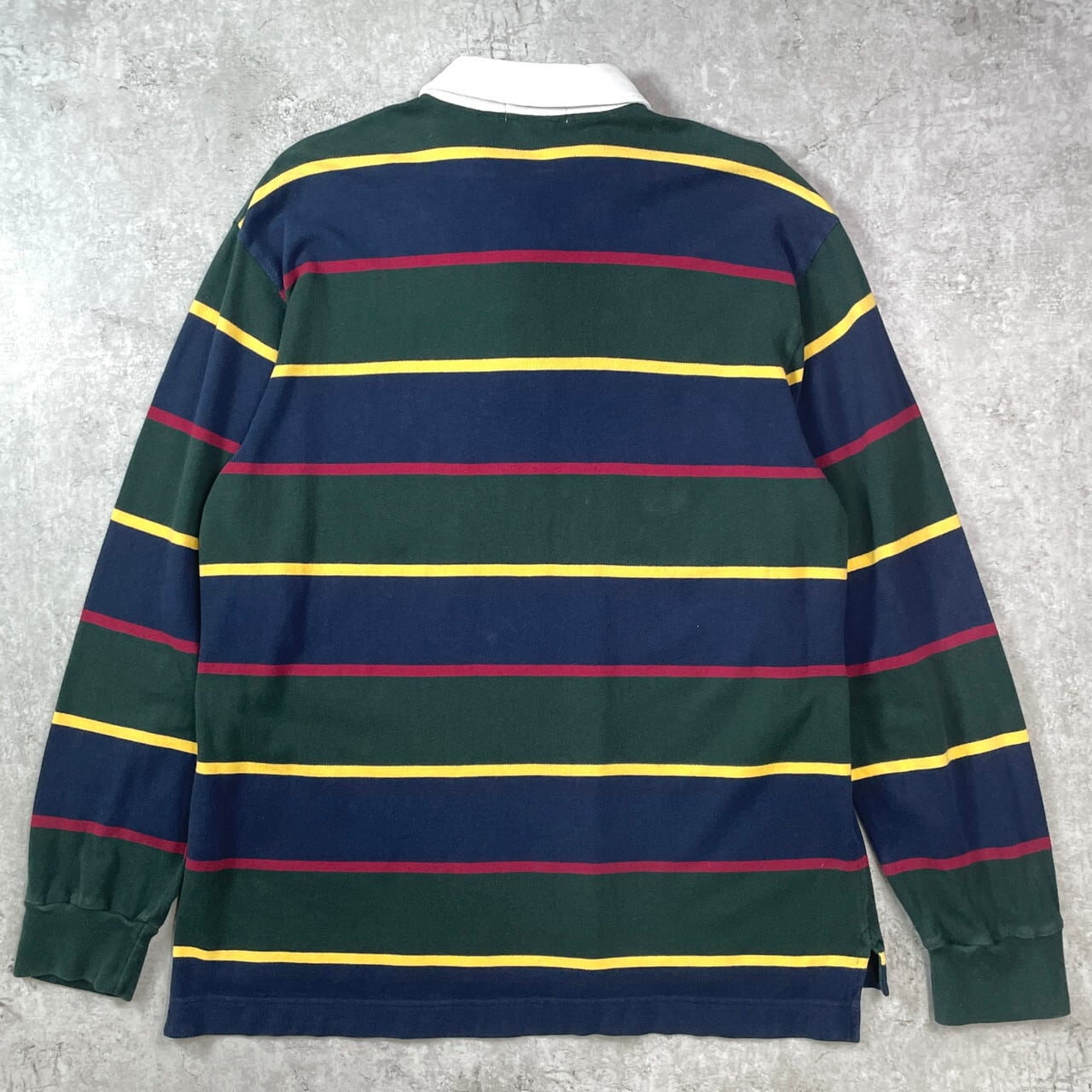 ■Nautica ノーティカ マルチボーダー 長袖ポロシャツ メンズXL 古着 ワンポイントロゴ刺繍 ネイビー グリーン イエロー レッド 紺色 緑 黄色 赤【ポロシャツ・ラガーシャツ】/マルチカラー