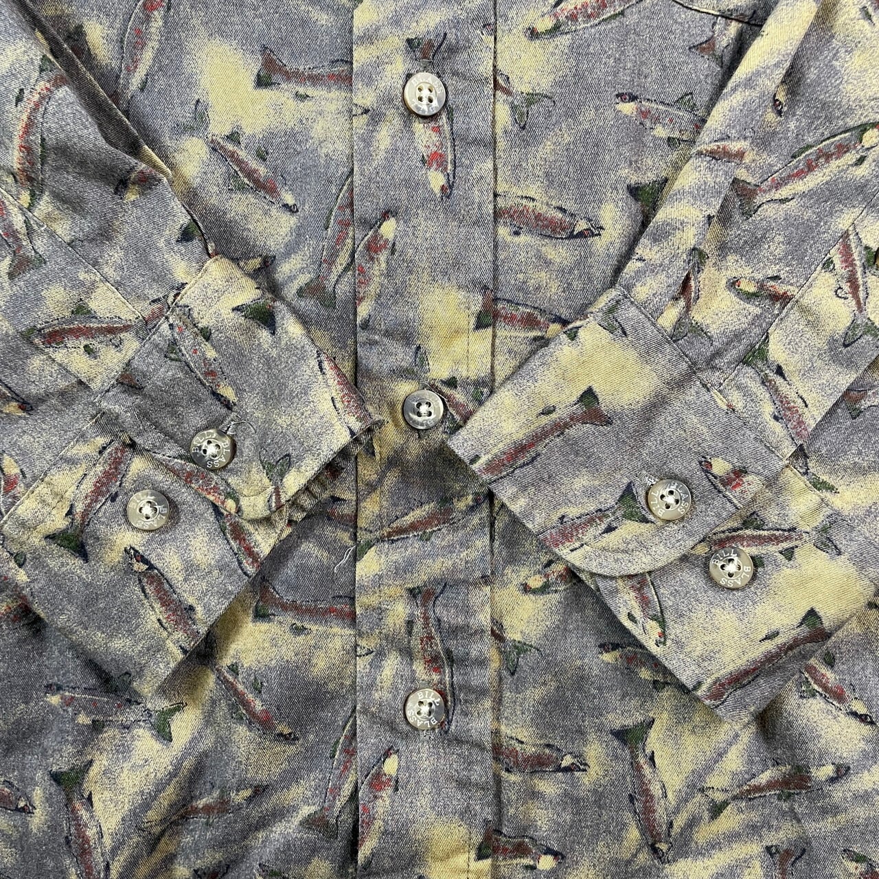■BILL BLASS 魚 フィッシュ 総柄 長袖シャツ メンズXL相当 古着 ボタンダウン B.D【長袖シャツ】/マルチカラー
