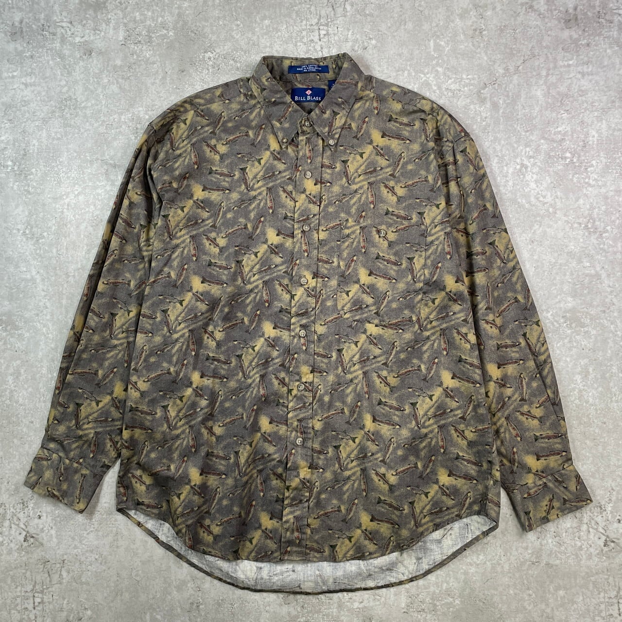 BILL BLASS 魚 フィッシュ 総柄 長袖シャツ メンズXL相当 古着 ボタンダウン B.D【長袖シャツ】/マルチカラー