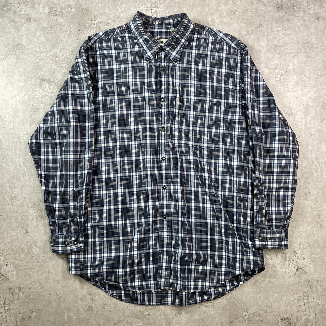 IZOD 長袖 ボタンダウン チェックシャツ メンズXL相当 古着 アメカジ グレー ネイビー ホワイト イエロー【長袖シャツ】/マルチカラー