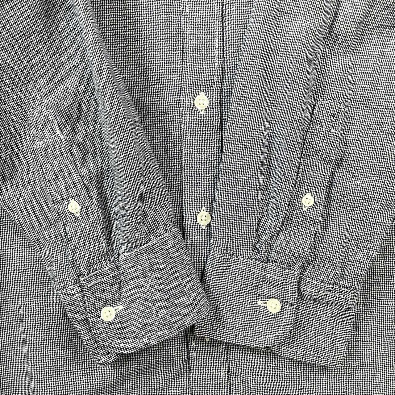 ■J.CREW ジェイクルー 千鳥格子 長袖 リネンシャツ メンズXL 古着 ボタンダウン チェックシャツ ネイビー ホワイト 紺色 白【長袖シャツ】/マルチカラー