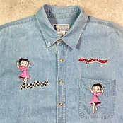 90年代 Betty-Boop ベティーちゃん キャラクター デニムシャツ メンズXL 古着 90s ヴィンテージ VINTAGE【長袖シャツ】/ブルー