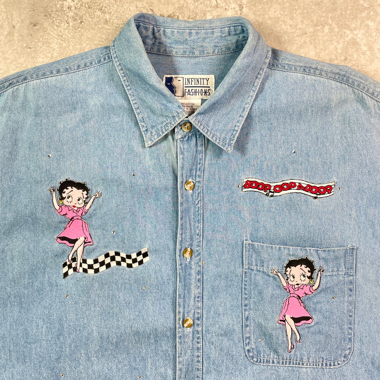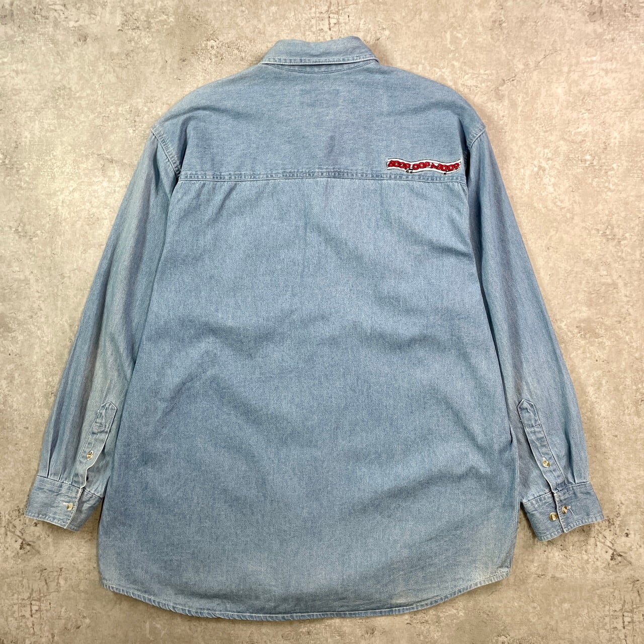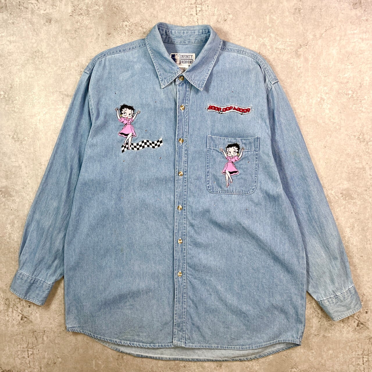 ■90年代 Betty-Boop ベティーちゃん キャラクター デニムシャツ メンズXL 古着 90s ヴィンテージ VINTAGE【長袖シャツ】/ブルー