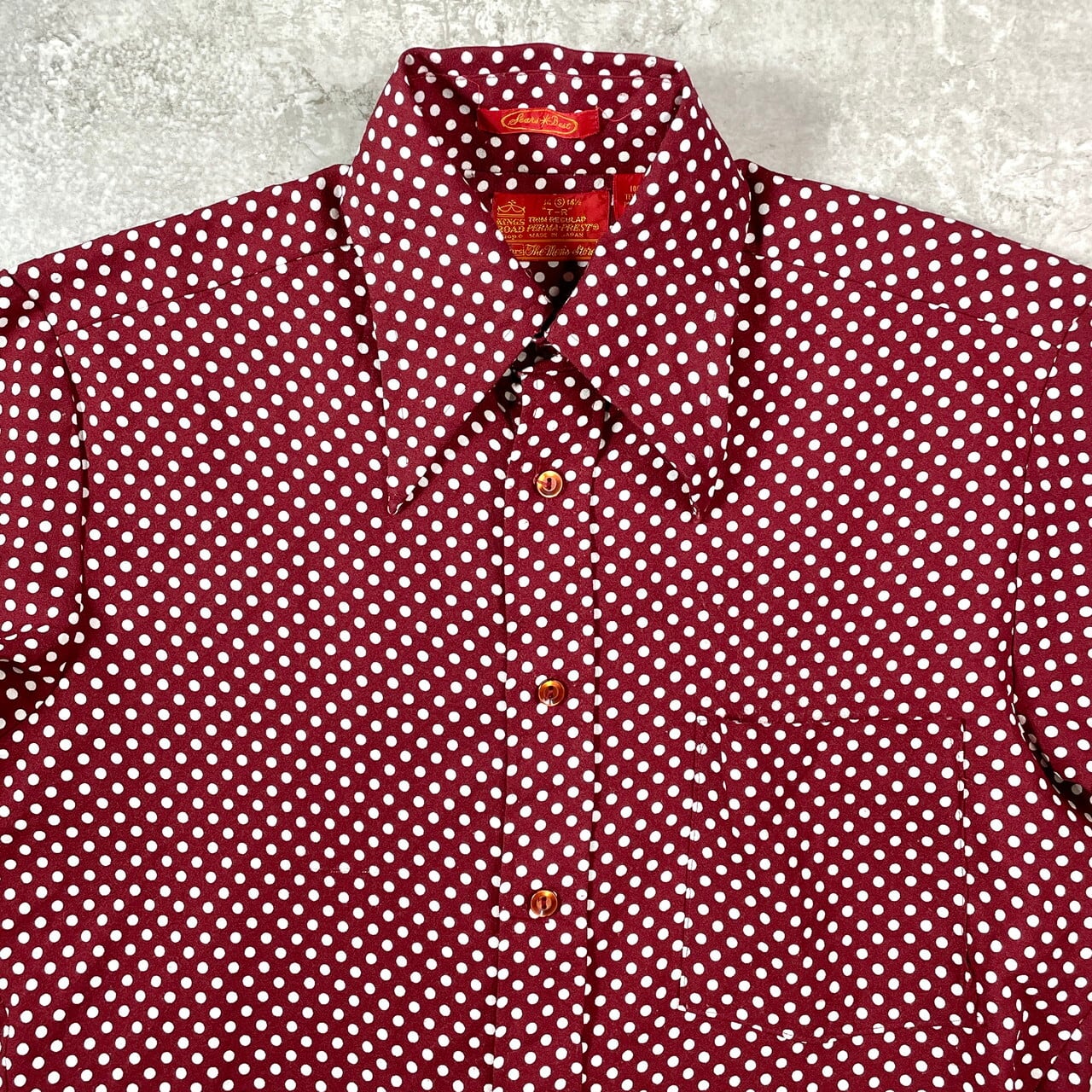 70年代 SEARS KINGS ROAD シアーズ ドット柄 ポリエステルシャツ ポリシャツ メンズS 古着 70s VINTAGE ヴィンテージ ドレスシャツ ボルドー ワインレッド ホワイト【長袖シャツ】/マルチカラー
