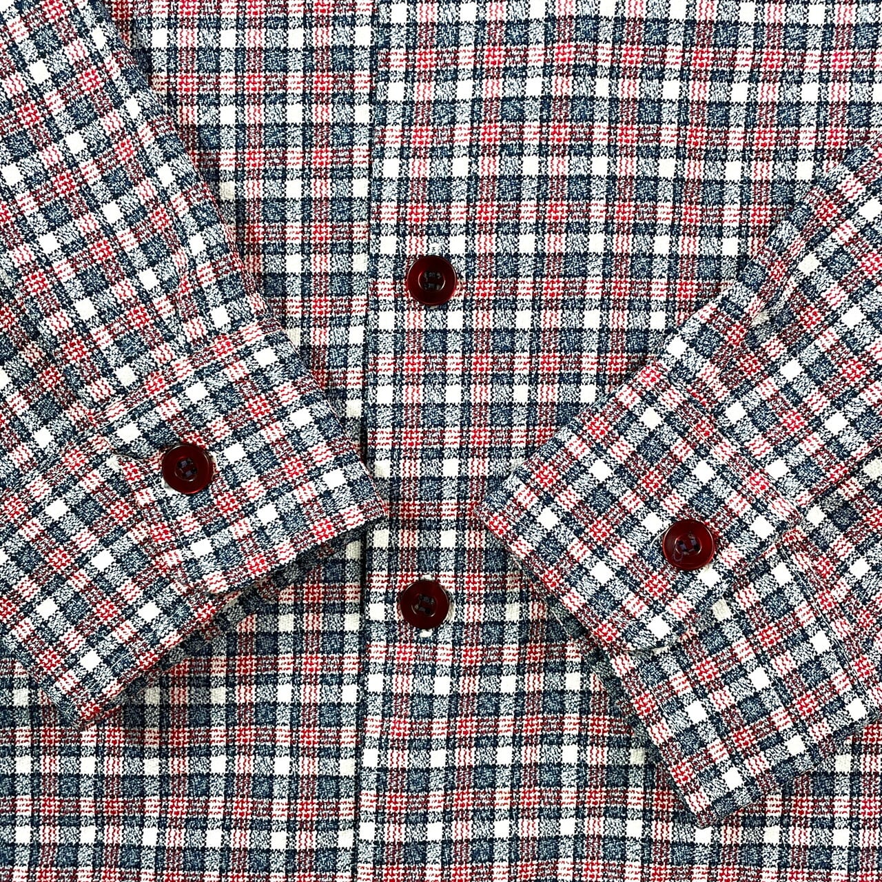 ■70年代 JC Penney チェック柄 ポリエステルシャツ ポリシャツ メンズXL 古着 70s VINTAGE ヴィンテージ ボックスシャツ モンゴメリーワード ネイビー レッド ホワイト【長袖シャツ】/マルチカラー