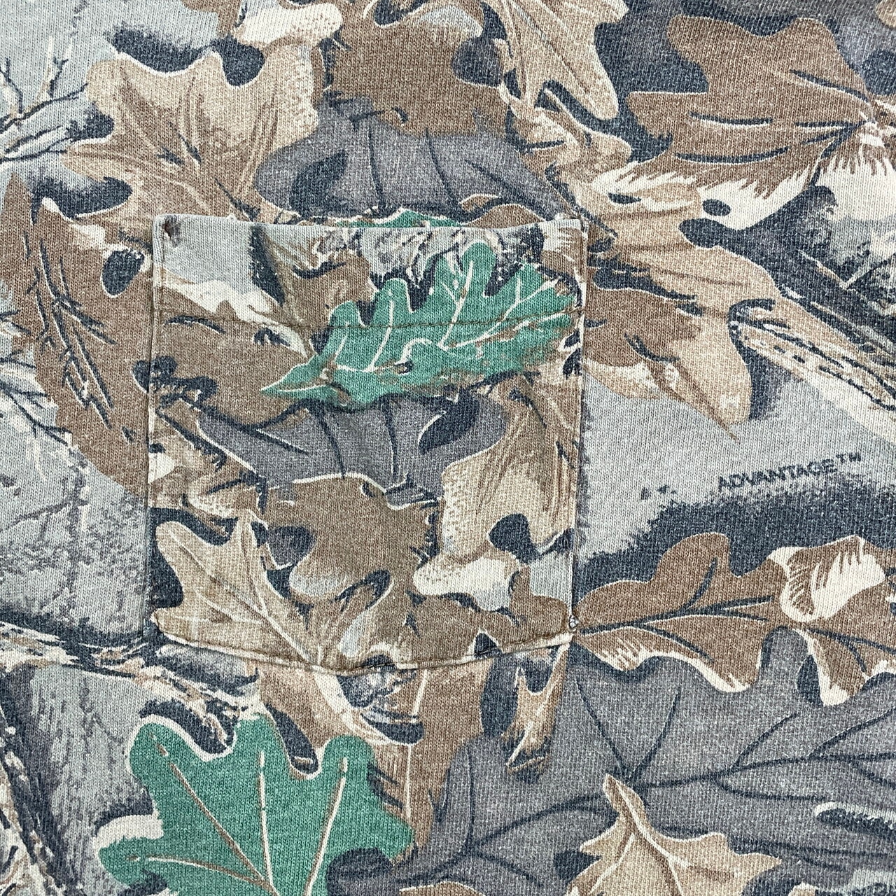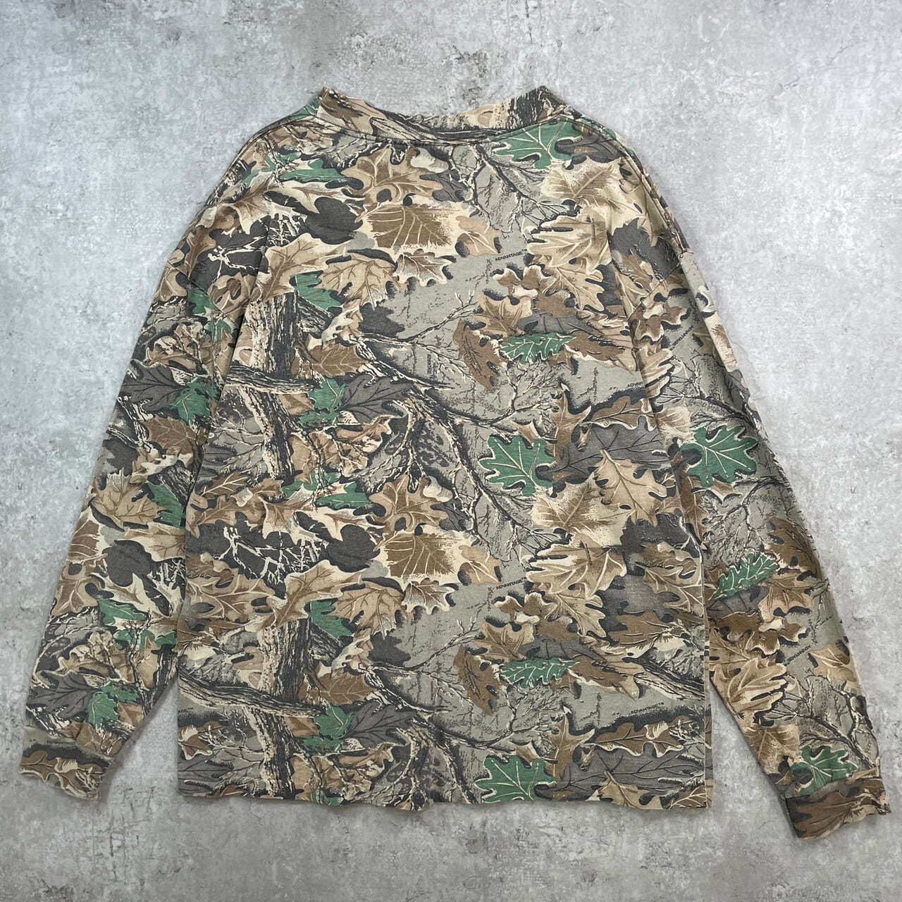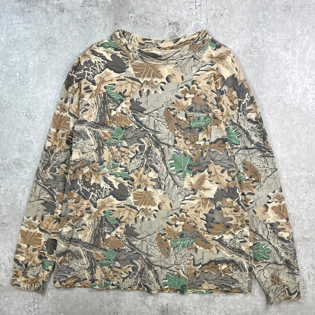 ■80年代 REDHEAD リアルツリーカモ ポケT ロングTシャツ ロンT メンズXL相当 古着 80s VINTAGE ヴィンテージ レッドヘッド 迷彩 総柄【ロングTシャツ】/マルチカラー