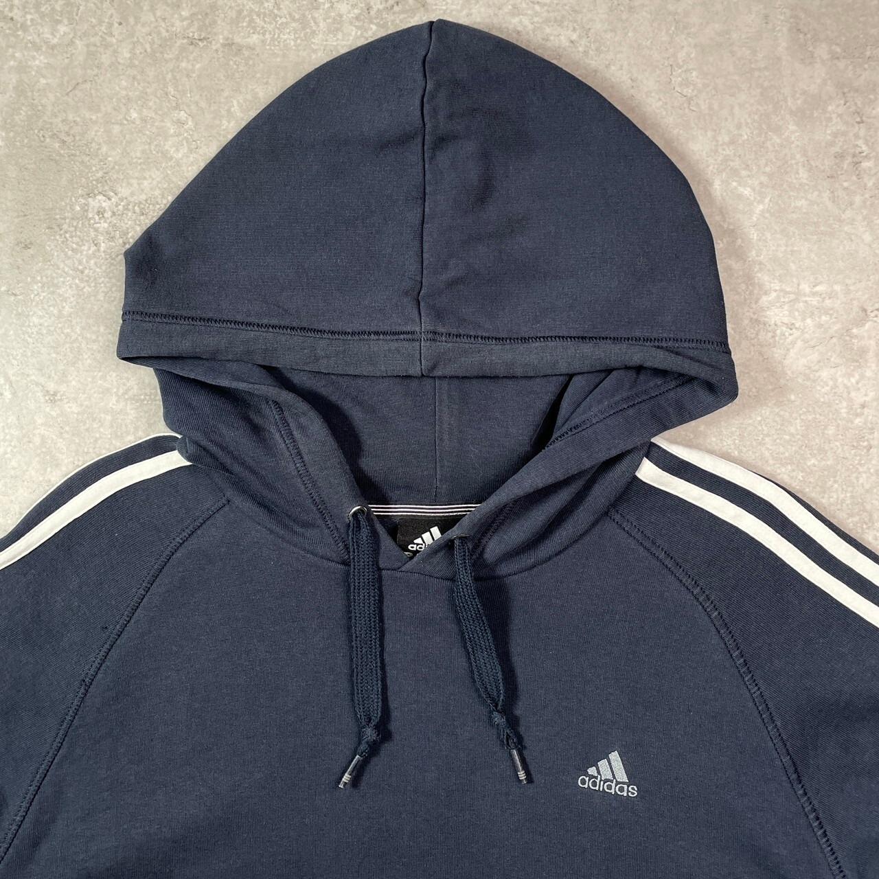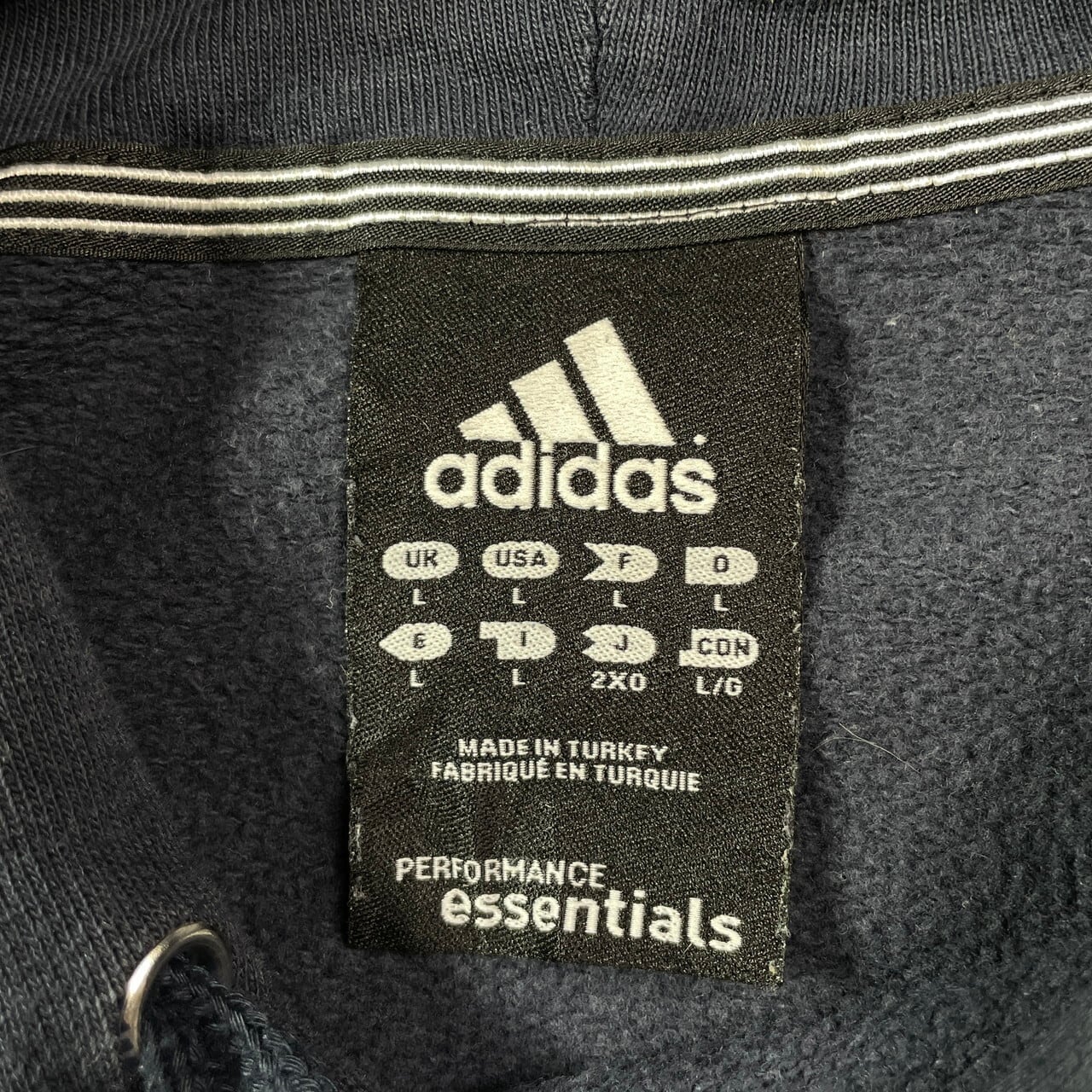 00年代 adidas アディダス スウェットパーカー パフォーマンスロゴ刺繍 メンズL 古着 00s VINTAGE ヴィンテージ サイドライン フーディー 紺色【パーカー】ネイビー