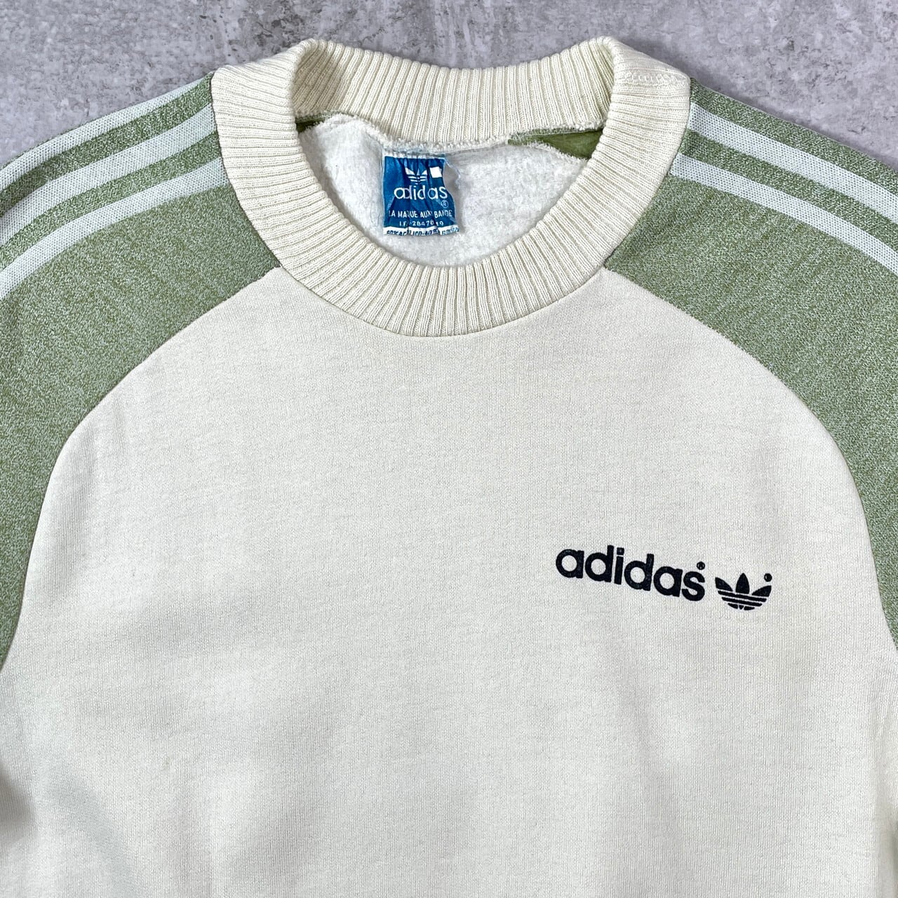 70年代 adidas アディダス トレフォイルロゴプリント スウェットシャツ メンズL相当 古着 70s ヴィンテージ VINTAGE トレーナー サイドポケット付き アイボリー オフホワイト ミントグリーン【スウェット】/マルチカラー