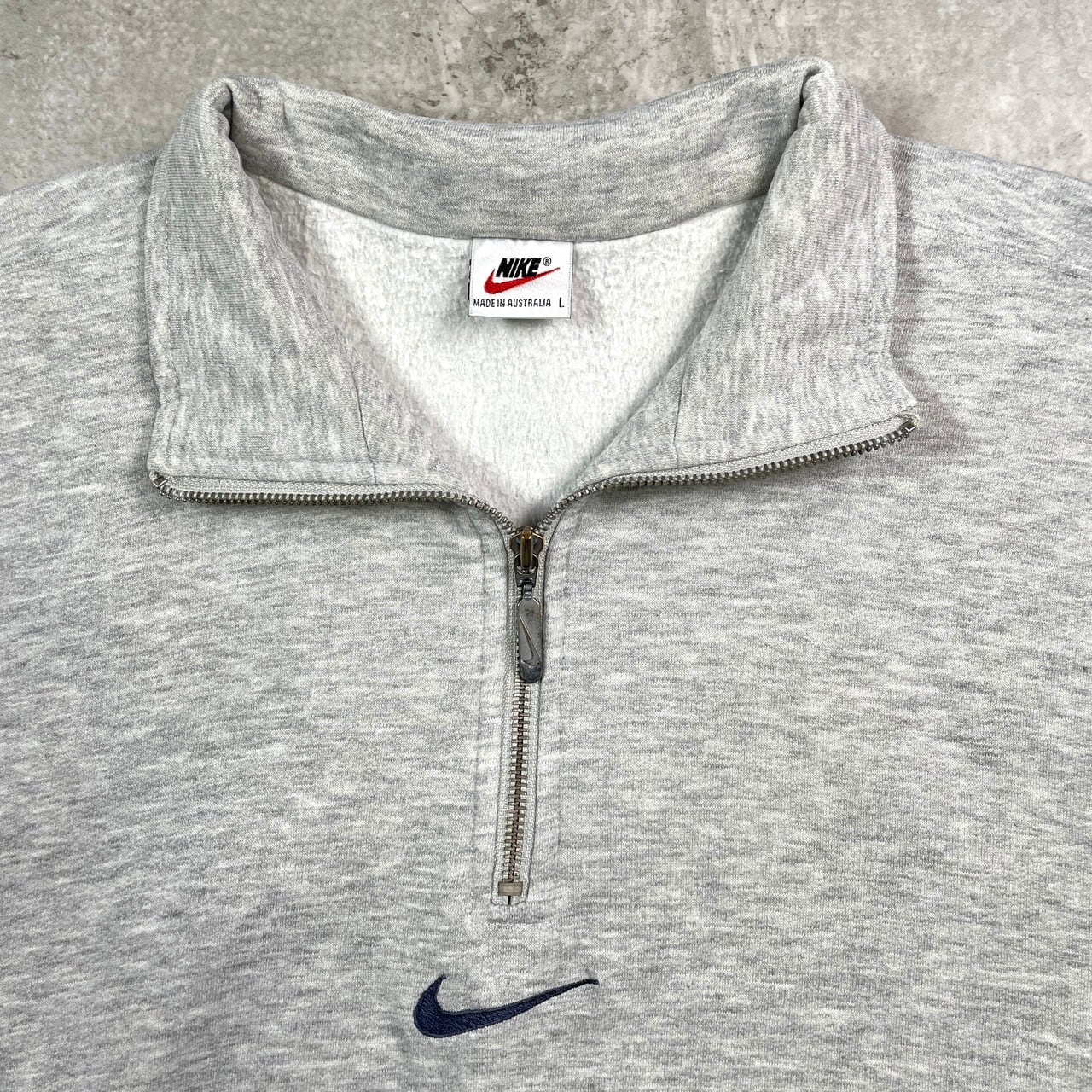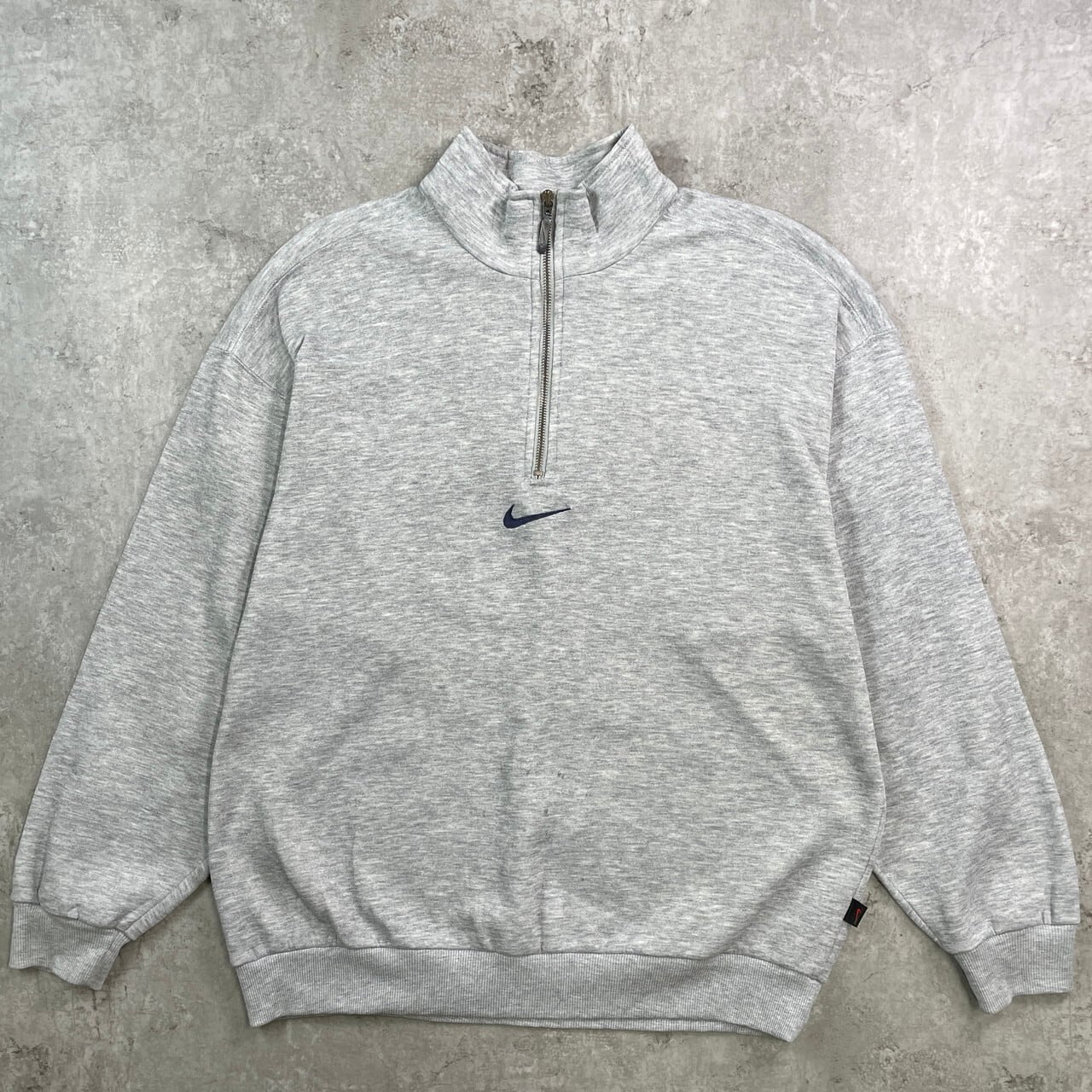 90年代 NIKE ナイキ センターロゴ刺繍 ハーフジップ スウェットシャツ メンズXL相当 古着 90s VINTAGE ヴィンテージ トレーナー ライトグレー【スウェット】/グレー