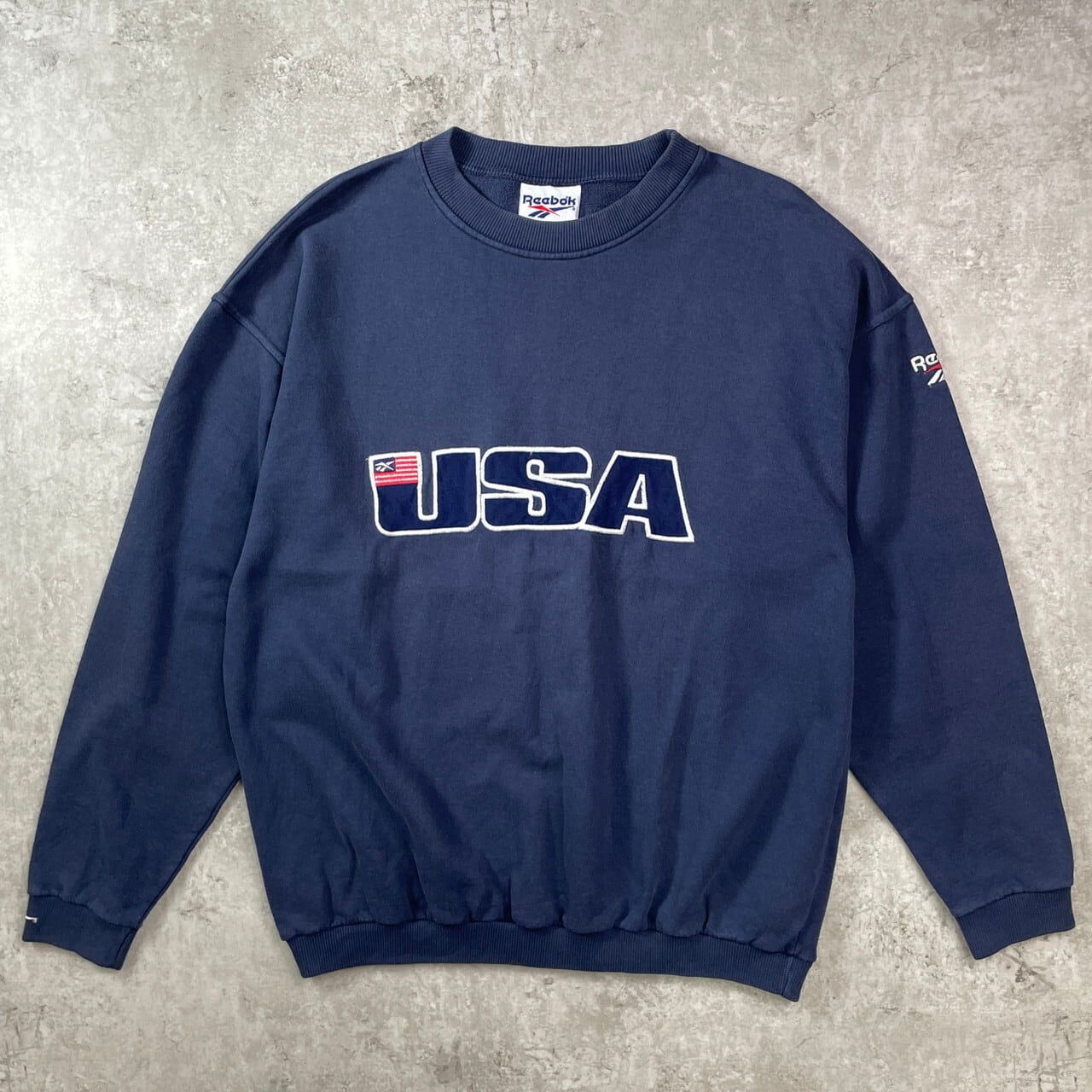 90年代 Reebok リーボック USAロゴ スウェットシャツ メンズL相当 古着 90s VINTAGE ヴィンテージ Y2K トレーナー 紺色【トレーナー】/ネイビー