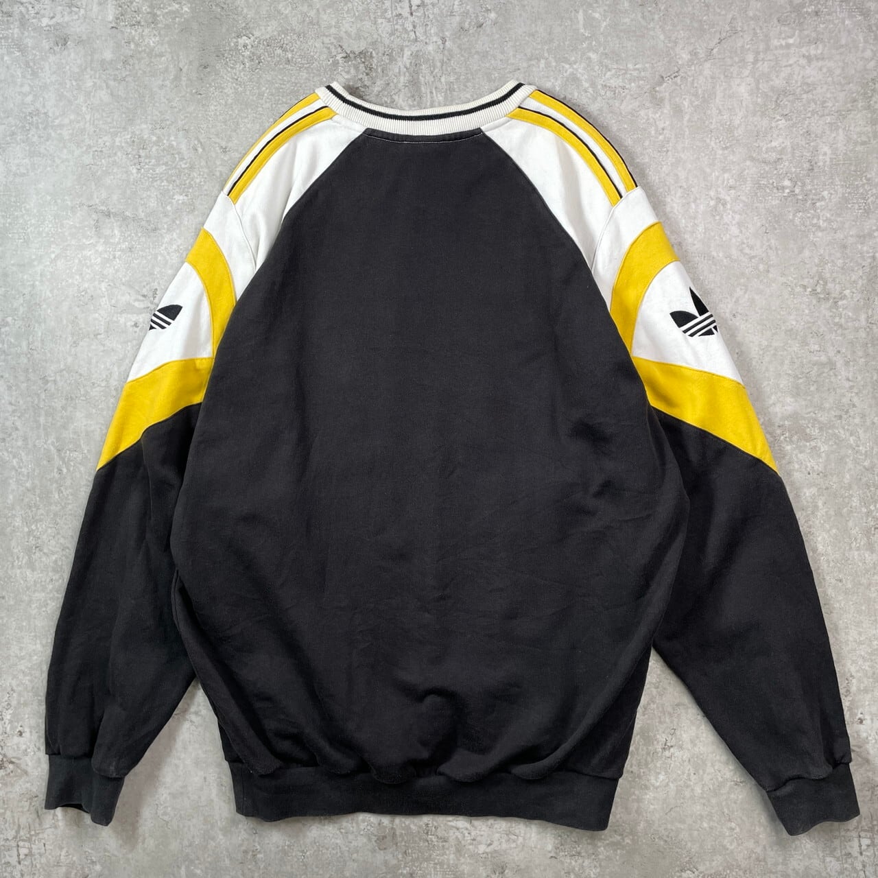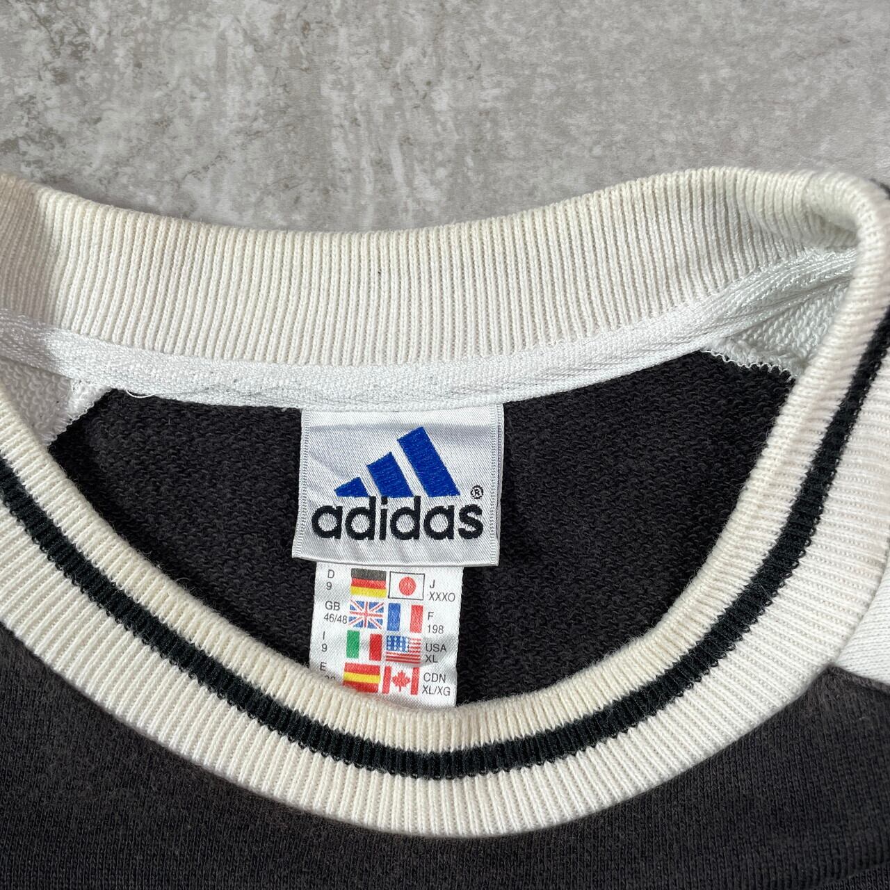 90年代 adidas アディダス トレフォイルロゴ刺繍 デザインスウェットシャツ メンズ2XL相当 古着 90s VINTAGE ヴィンテージ トレーナー ビッグサイズ 大きいサイズ ブラック イエローホワイト 黒 白 黄色【スウェット】/マルチカラー