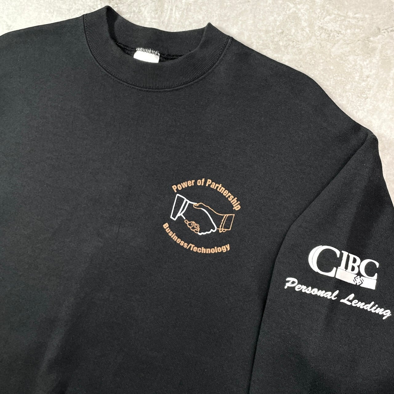 90年代 CIBC 企業ロゴプリント スウェットシャツ メンズXL相当 古着 90s ヴィンテージ VINTAGE トレーナー 黒色【スウェット】/ブラック