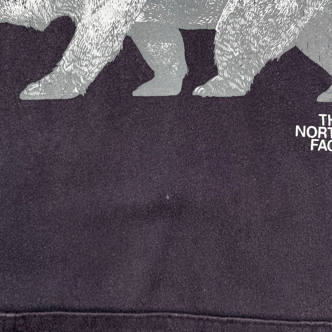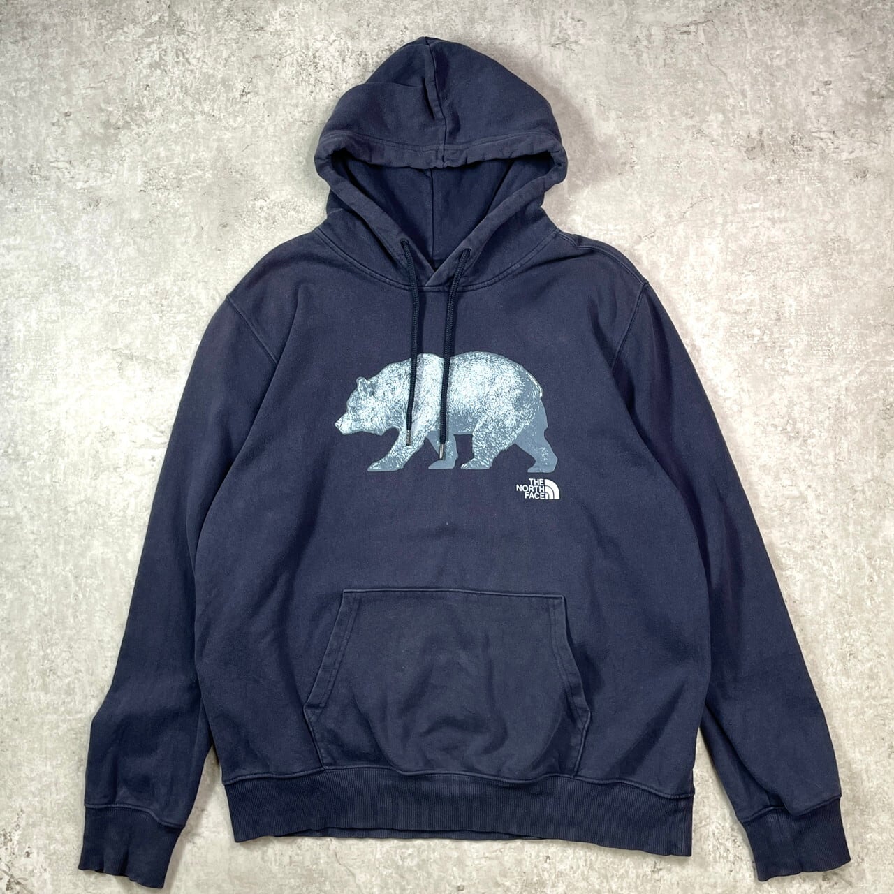 THE NORTH FACE ザ ノースフェイス アニマルプリント プルオーバー スウェットパーカー メンズL相当 古着 熊 ベアー 紺色【パーカー】/ネイビー