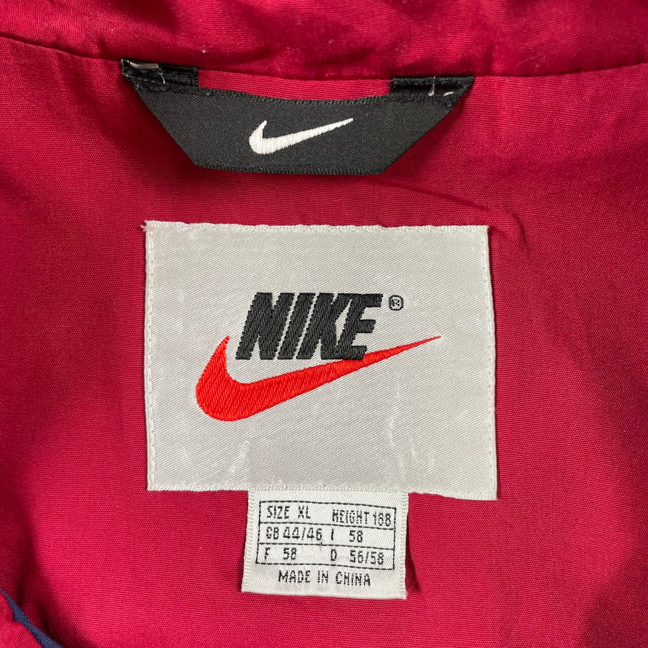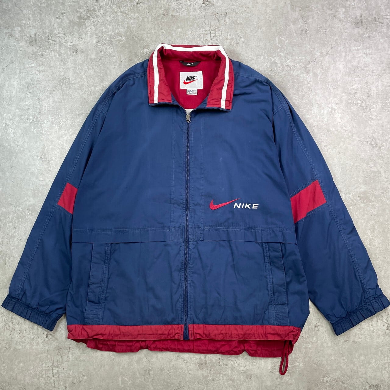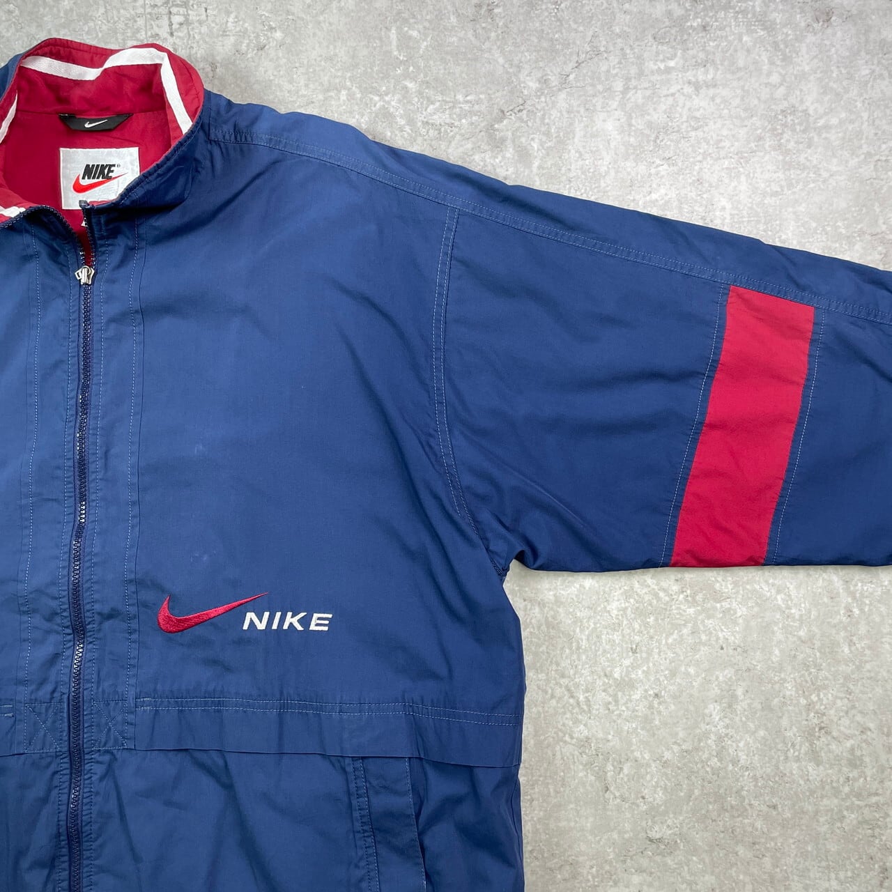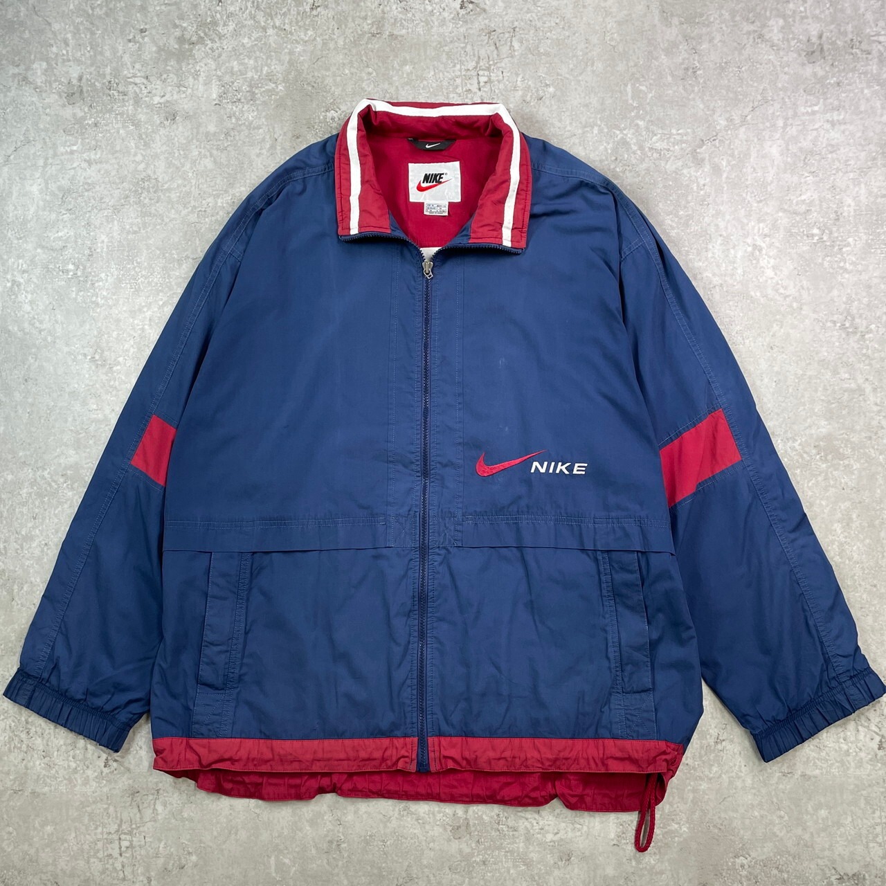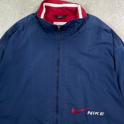 90年代 NIKE ナイキ ロゴ刺繍 ナイロンジャケット トラックジャケット メンズ2XL相当 古着 90s ヴィンテージ VINTAGE ビッグサイズ 大きいサイズ レッド 紺色 赤【ナイロンジャケット】/ネイビー