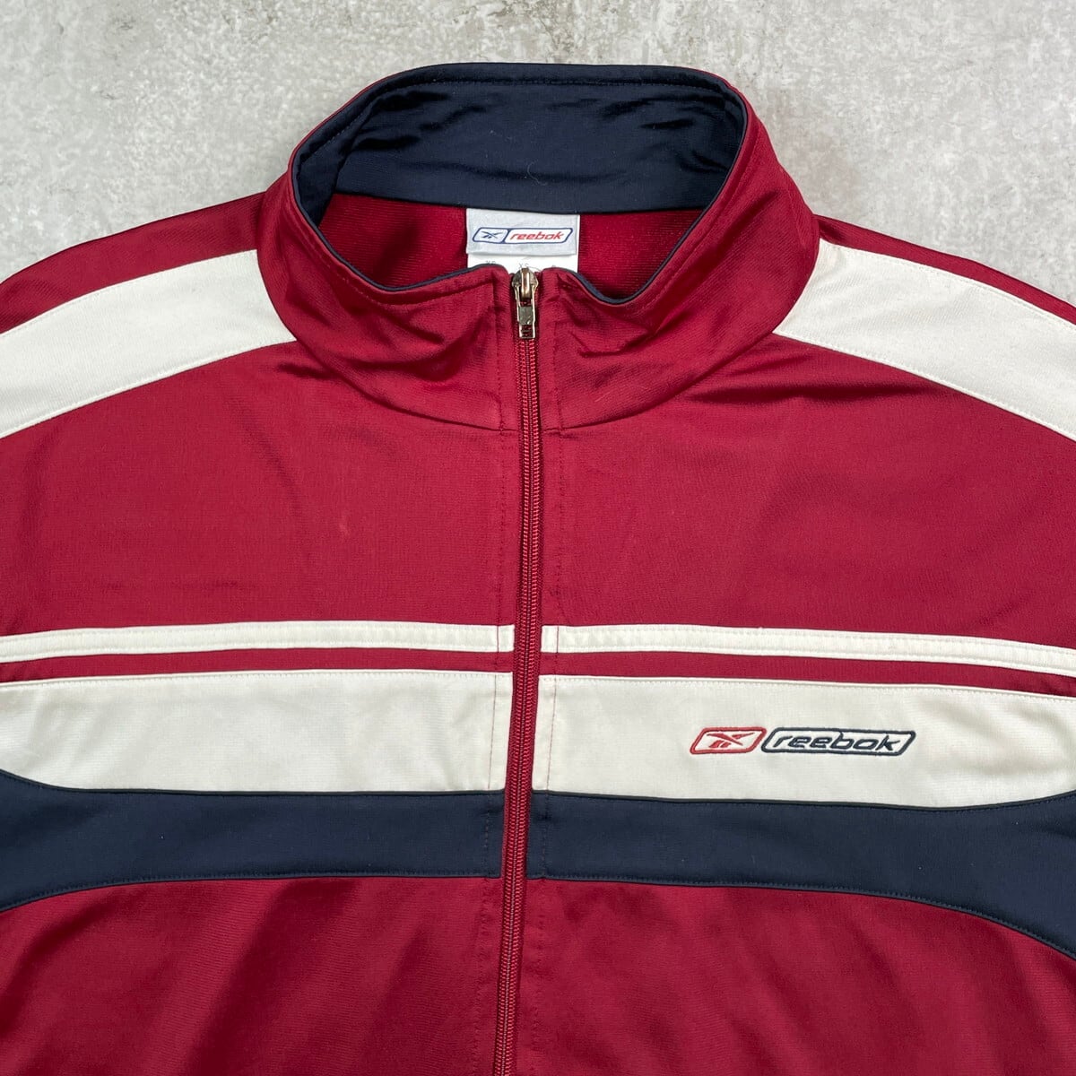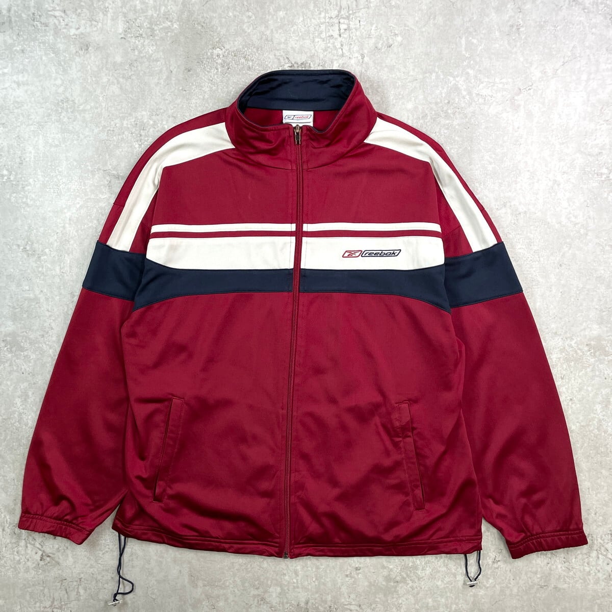 00年代 Reebok リーボック ジャージ トラックジャケット メンズL相当 古着 00s Y2K ヴィンテージ VINTAGE 切り替え ドローコード付き ワインレッド ホワイト ネイビー【ジャージ・トラックジャケット】/ワインレッド