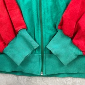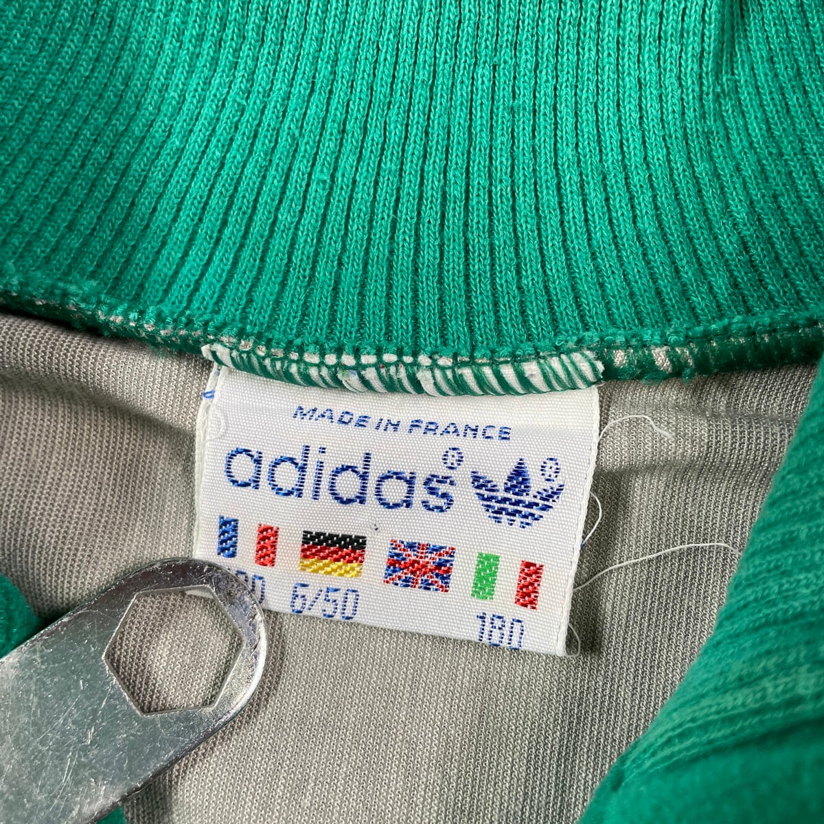 80年代 フランス製 VENTEX社製 adidas アディダス ハイネック ベロアジャージ トラックジャケット メンズL 古着 80s VINTAGE ヴィンテージ 切り替えデザイン グレー レッド エメラルドグリーン【ジャージ・トラックジャケット】/グリーン