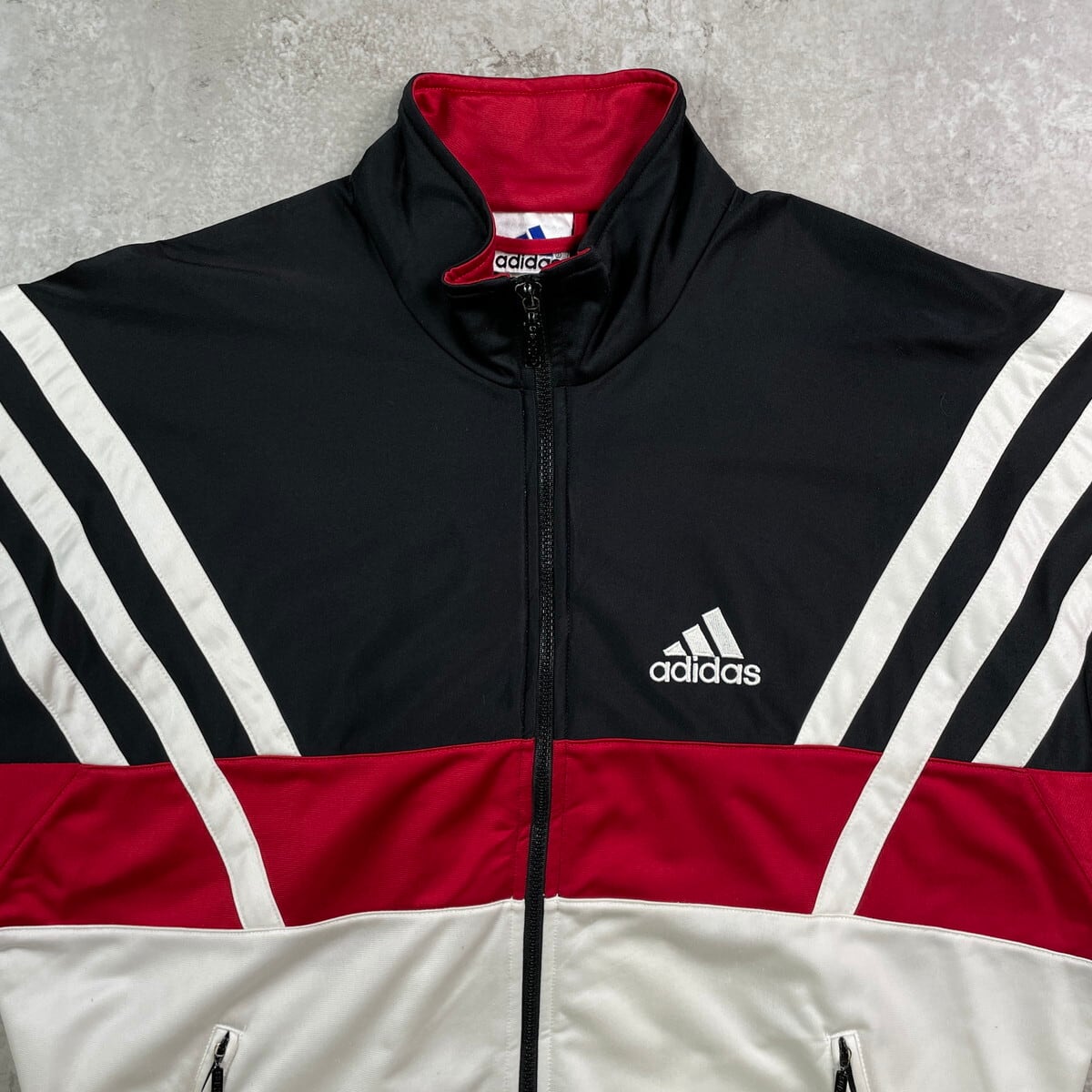 90年代 adidas アディダス ジャージ トラックジャケット パフォーマンスロゴ メンズL相当 古着 90s ヴィンテージ VINTAGE ラグランスリーブ ビッグロゴ刺繍 レッド ブラック ホワイト【ジャージ・トラックジャケット】/マルチカラー
