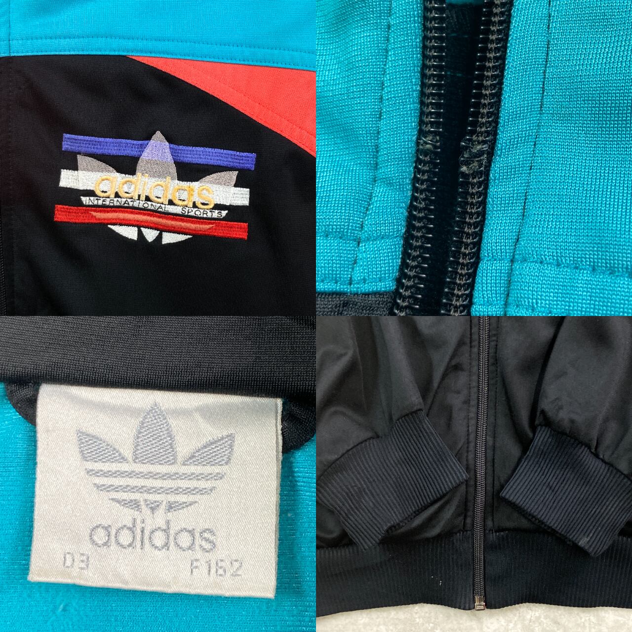 80年代 adidas INTERNATIONAL SPORTS アディダス トラックジャケット メンズL相当 古着 80s ヴィンテージ VINTAGE ブラック サーモンピンク ターコイズブルー【ジャージ・トラックジャケット】/マルチカラー