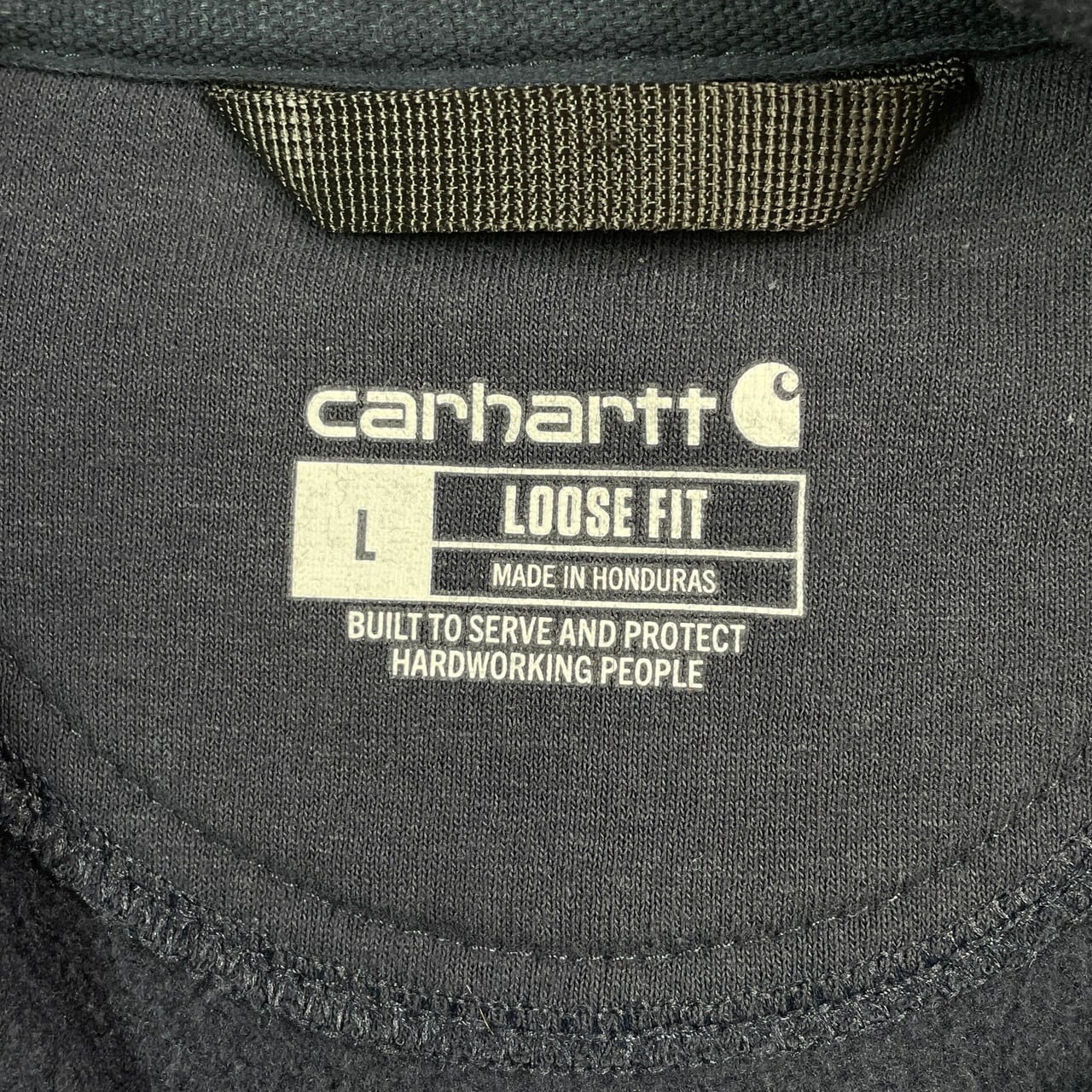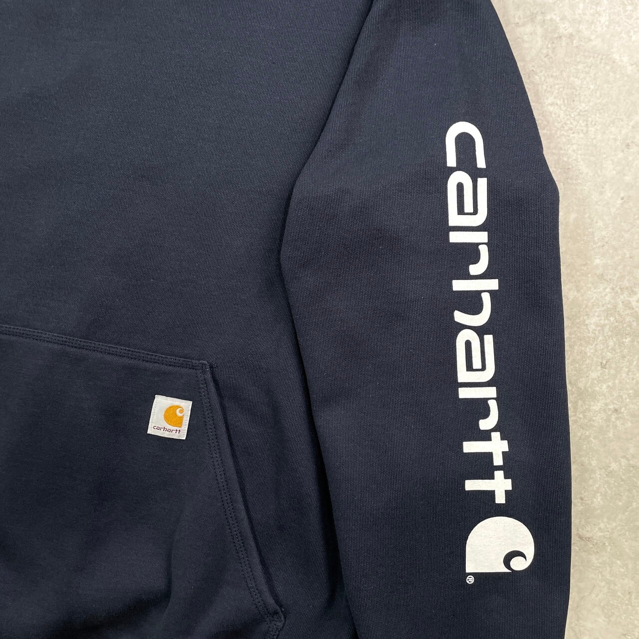 Carhartt カーハート スウェットパーカー LOOSE FIT メンズXL相当 古着 袖プリ ルーズフィット プルオーバーパーカー フーディー ダークネイビー 紺色【パーカー】/ネイビー