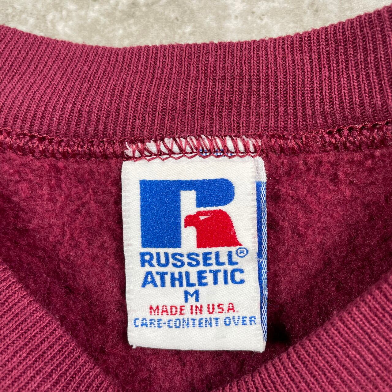 90年代 USA製 RUSSELL ATHLETIC ラッセル ブランクスウェットシャツ 無地 メンズM 古着 90s VINTAGE ヴィンテージ アメカジ トレーナー 前Vガゼット 刺繍タグ【スウェット】/ワインレッド