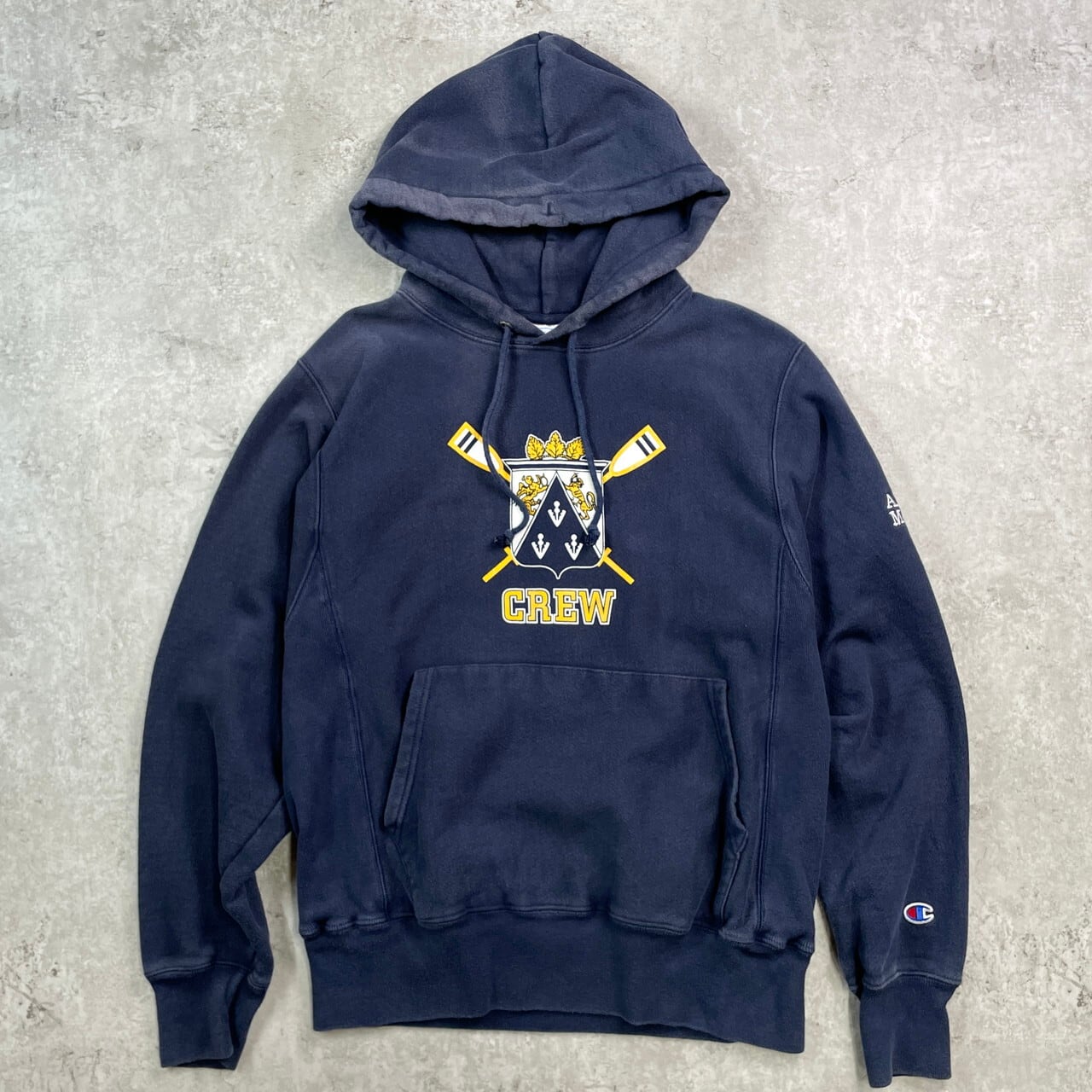 Champion チャンピオン カレッジプリント リバースウィーブ スウェットパーカー メンズM相当 古着 単色タグ 復刻 REVERSE WEAVE トレーナー フェードネイビー 紺色【パーカー】/ネイビー
