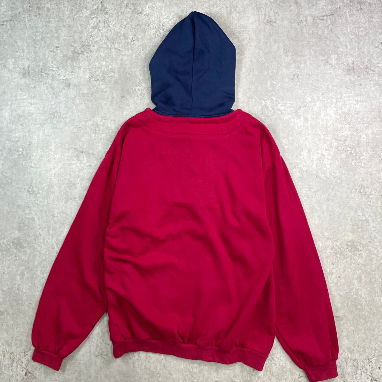 ■80~90年代 PACIFIC MOTION ハーフジップ デザインスウェットパーカー メンズL相当 古着 80s 90s ヴィンテージ VINTAGE アメカジ トレーナー フーディー ネイビー 紺色【パーカー】/ワインレッド