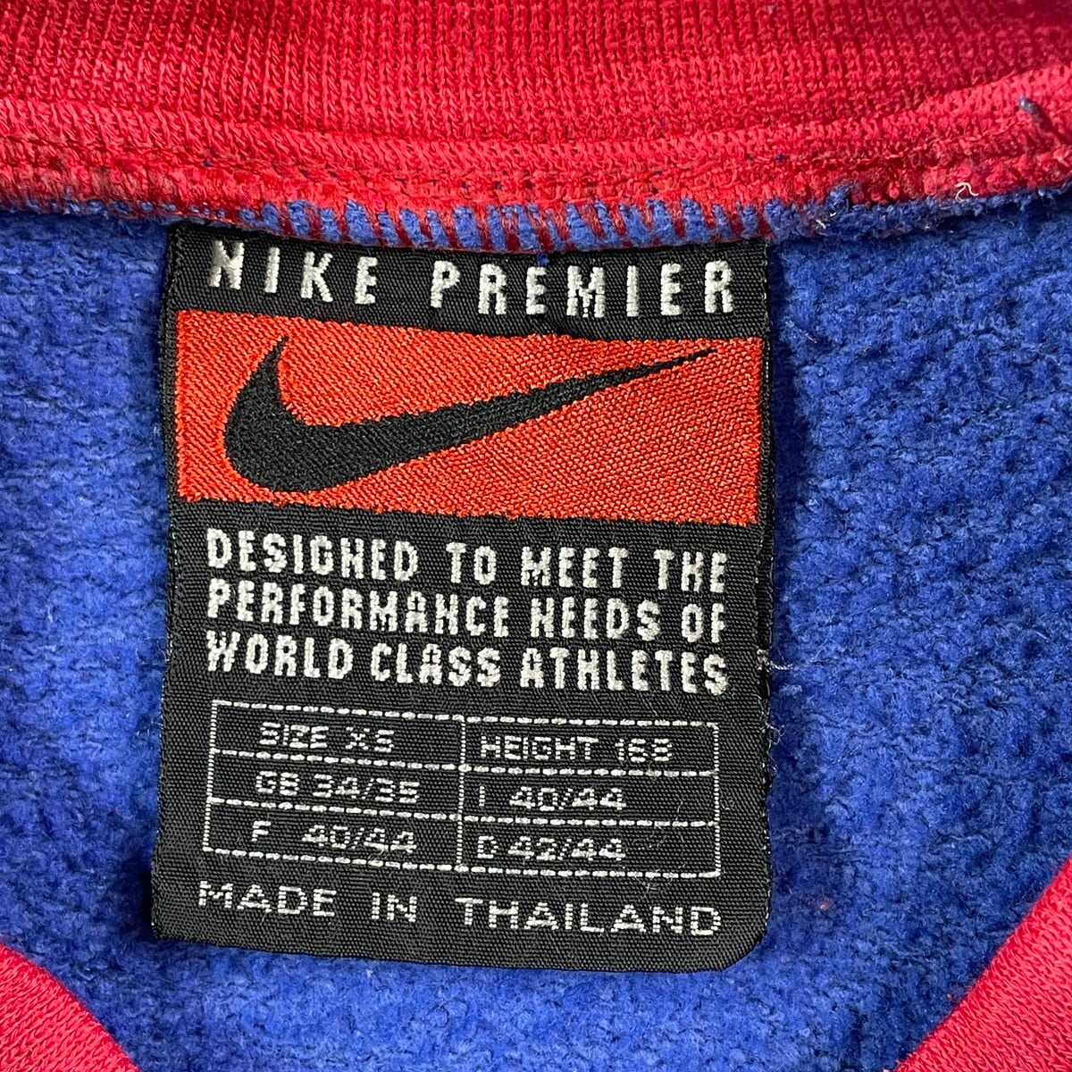 90年代 NIKE PARIS SAINT-GERMAIN ナイキ スウォッシュロゴ刺繍 スウェットシャツ メンズXS レディースS相当 古着 90s VINTAGE ヴィンテージ パリ サンジェルマン サッカー 裏起毛 フェイクレイヤード ジェイブルー ルージュ【スウェット】/ブルー