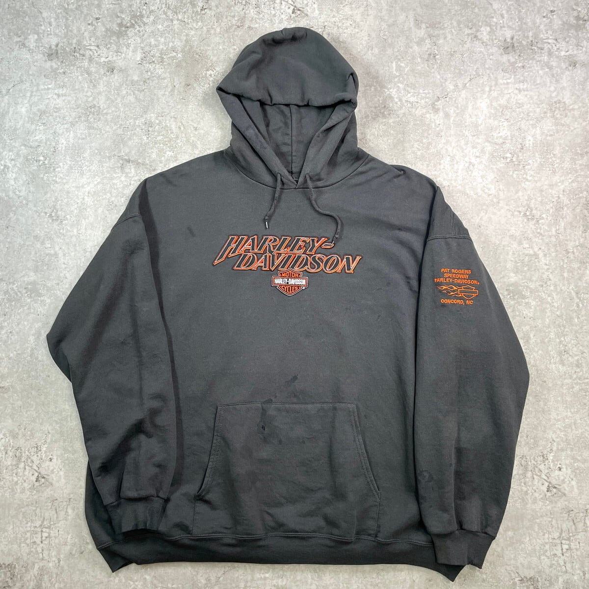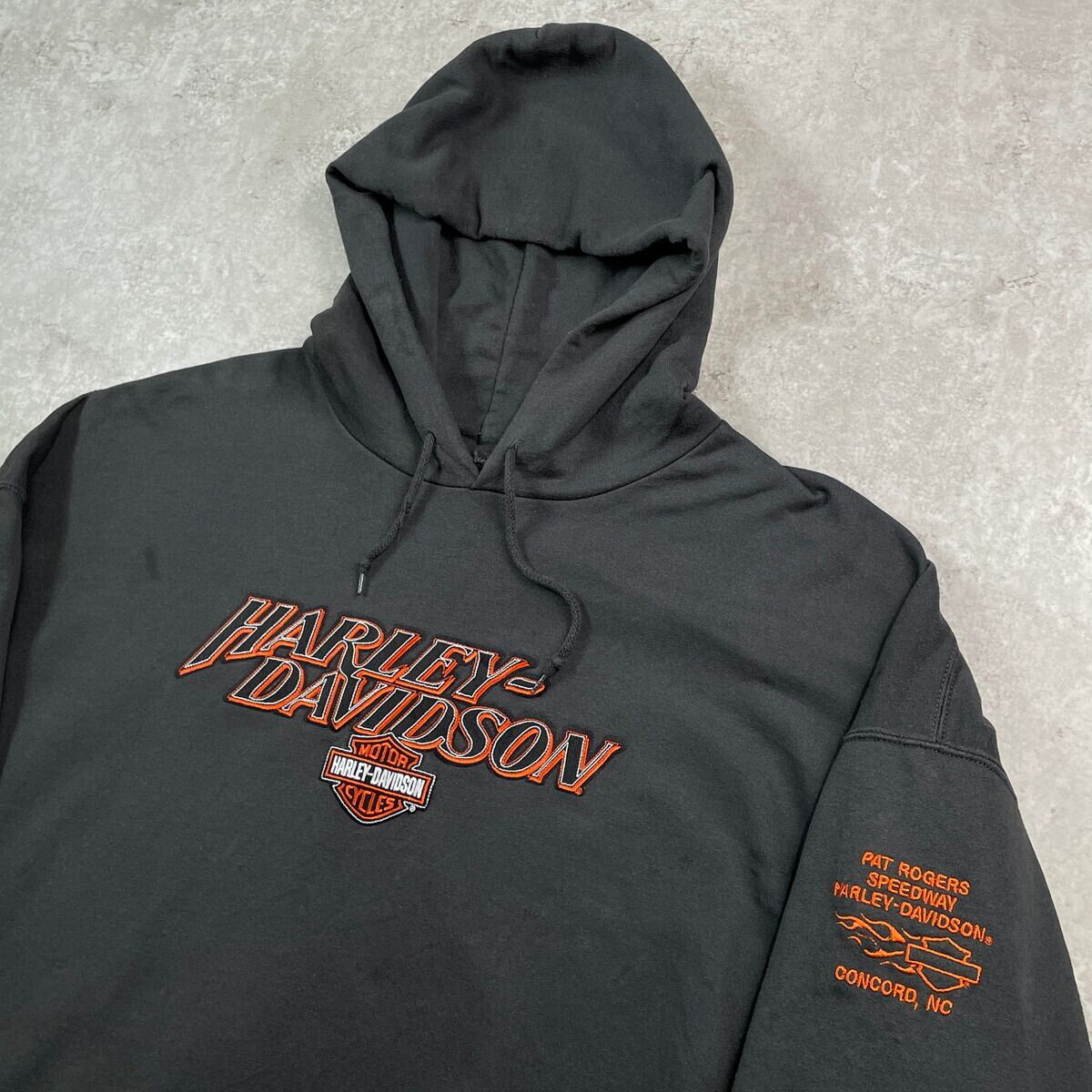 00年代 Harley-Davidson ハーレーダビッドソン ロゴ刺繍 スウェットパーカー メンズ3XL 古着 00s Y2K バイク モーターサイクル プルオーバーパーカー 袖ロゴ刺繍 ビッグサイズ 大きいサイズ 黒【パーカー】/ブラック