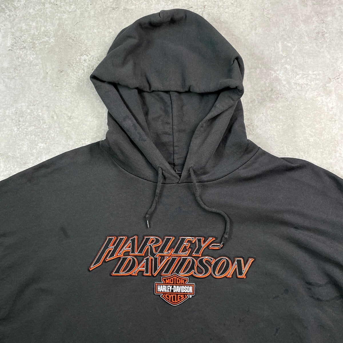 ■00年代 Harley-Davidson ハーレーダビッドソン ロゴ刺繍 スウェットパーカー メンズ3XL 古着 00s Y2K バイク モーターサイクル プルオーバーパーカー 袖ロゴ刺繍 ビッグサイズ 大きいサイズ 黒【パーカー】/ブラック