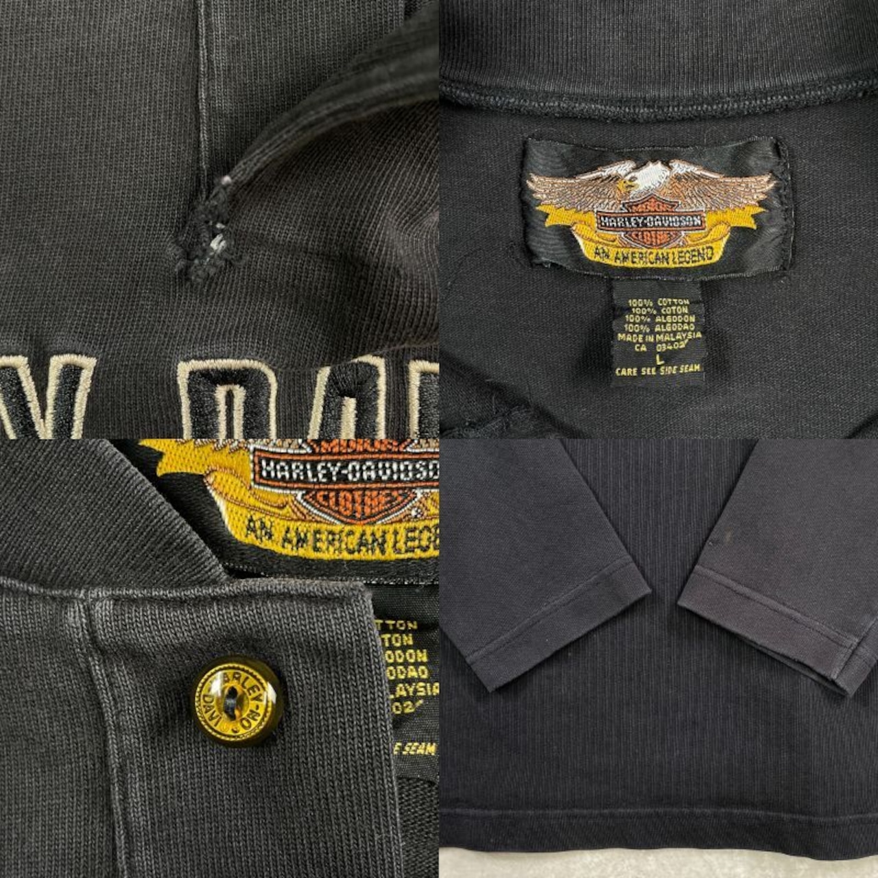 ■90~00年代 Harley-Davidson ハーレーダビッドソン ロングTシャツ ロンT メンズL 古着 90s 00s Y2K ヴィンテージ VINTAGE ロゴ刺繍 バイク モーターサイクル 黒色【ロングTシャツ】/ブラック