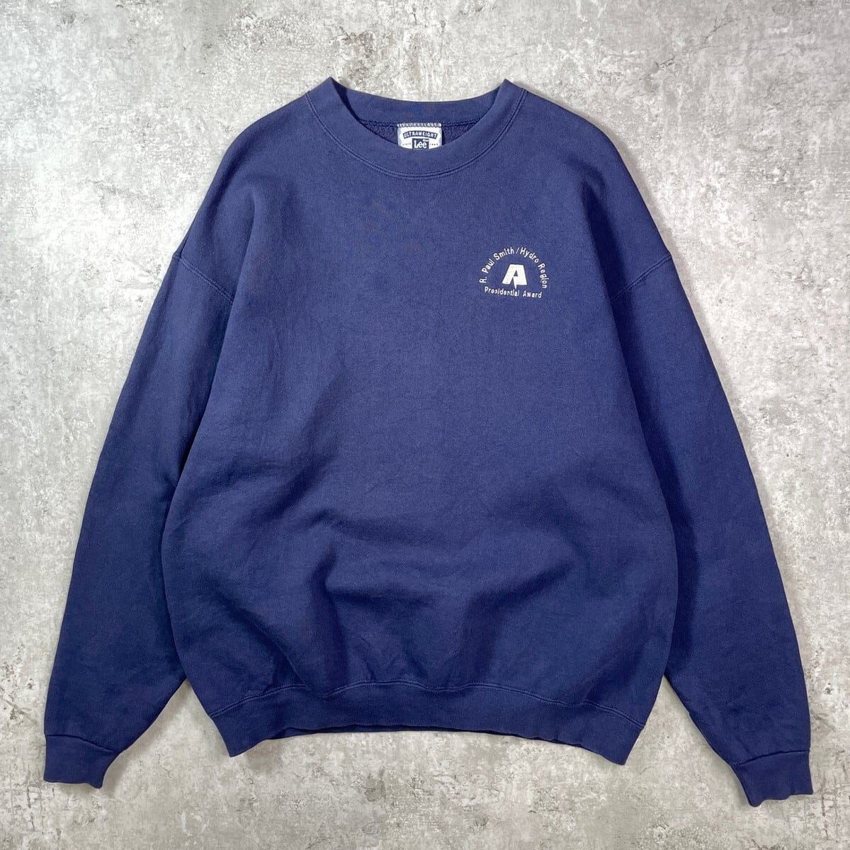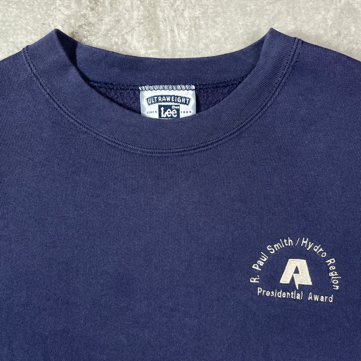 90年代 USA製 Lee リー ワンポイント企業ロゴ刺繍 スウェットシャツ メンズL 古着 90s ヴィンテージ VINTAGE トレーナー 裏起毛 紺色 ナス紺【スウェット】/ネイビー