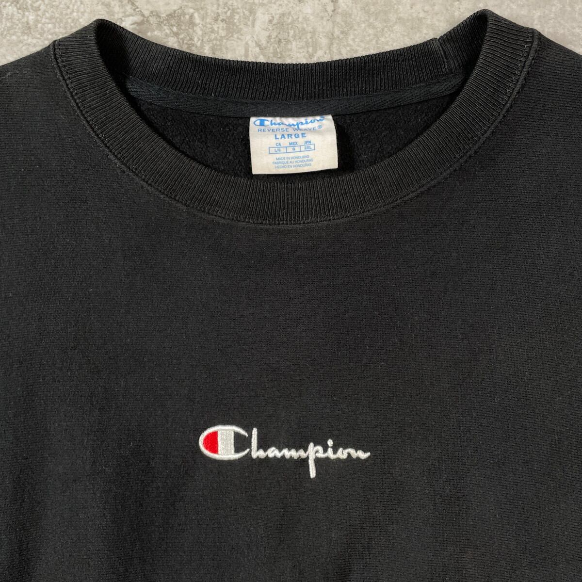 ■Champion チャンピオン リバースウィーブ センターロゴ刺繍 スウェットシャツ メンズXL相当 古着 アメカジ REVERSE WEAVE トレーナー 袖ロゴプリント 単色タグ 復刻 黒色【スウェット】/ブラック