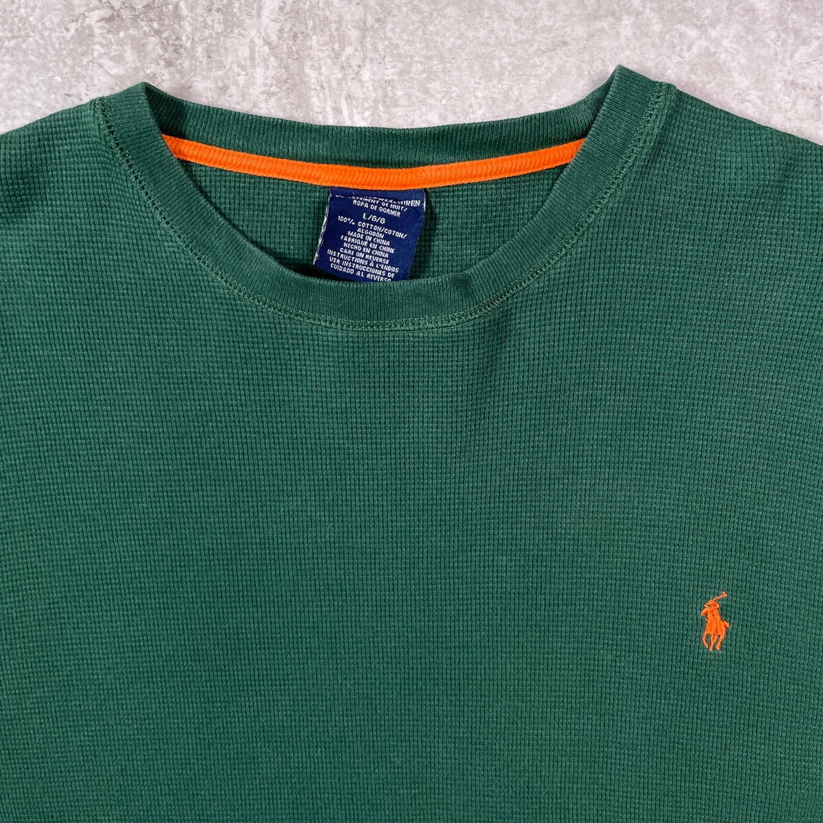 ■Polo Ralph Lauren ポロラルフローレン サーマル ロングTシャツ ロンT SLEEPWEAR メンズL 古着 ワンポイントロゴ刺繍 緑色【ロングTシャツ】/グリーン