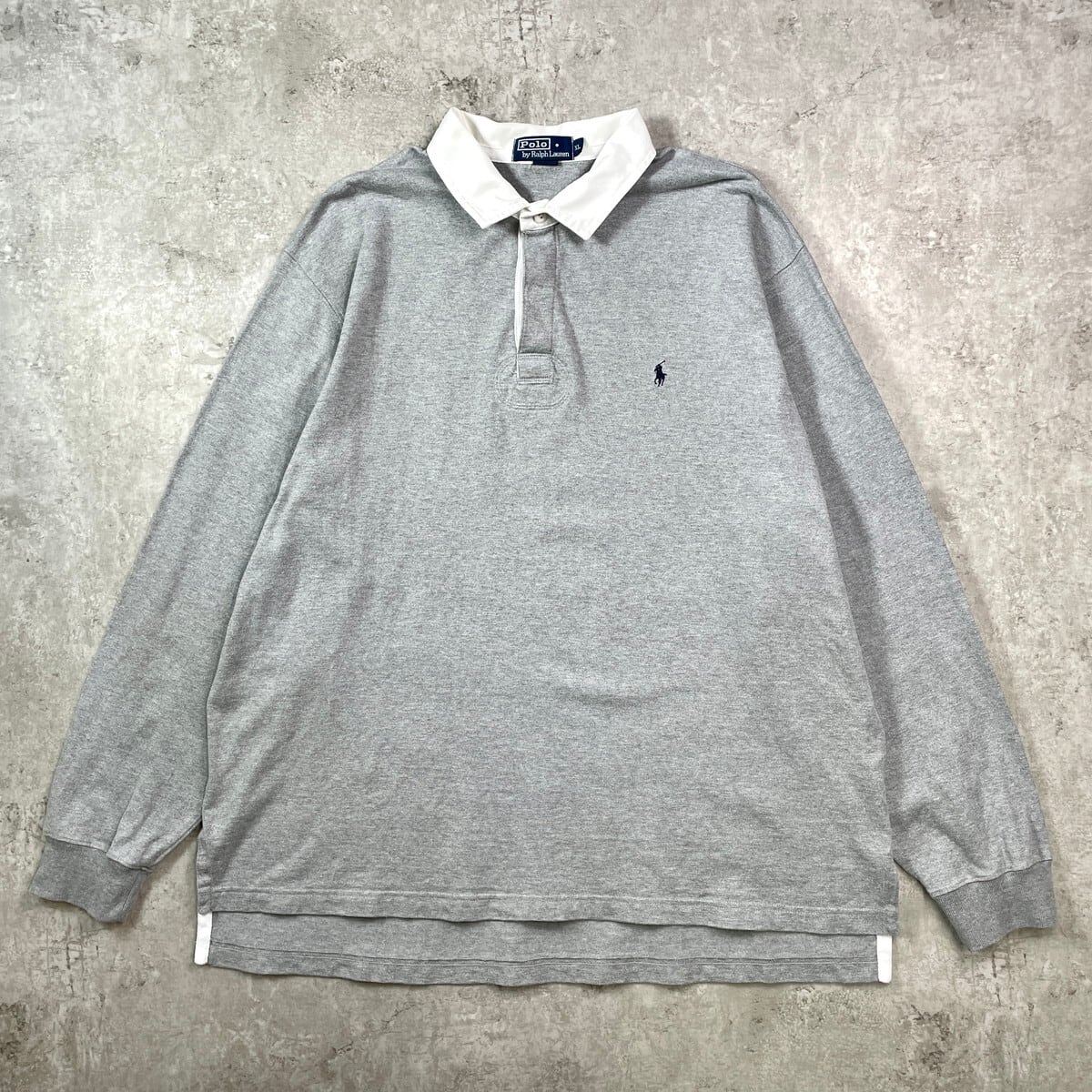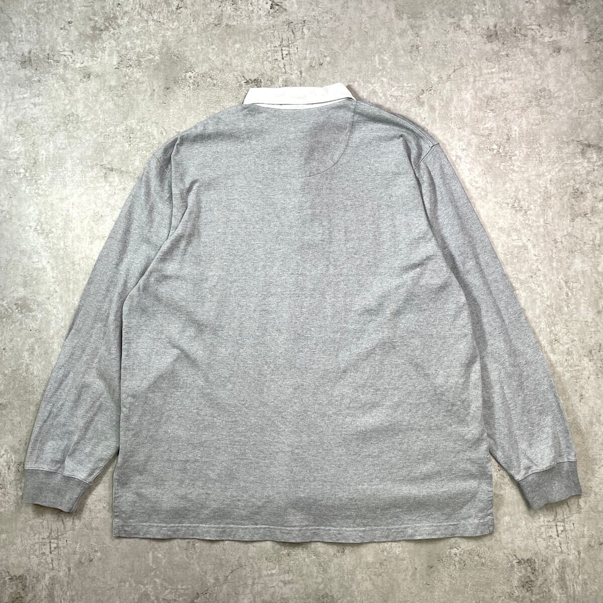 ■Polo by Ralph Lauren ポロバイラルフローレン ワンポイントロゴ刺繍 ラガーシャツ メンズ2XL相当 古着 ポロシャツ ビッグサイズ 大きいサイズ 灰色【ポロシャツ・ラガーシャツ】/グレー