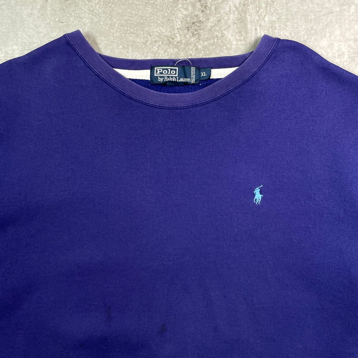 Polo by Ralph Lauren ポロバイラルフローレン ワンポイントロゴ刺繍 スウェットシャツ メンズ2XL相当 古着 クルーネック トレーナー ビッグサイズ 大きいサイズ 紫色【スウェット】/パープル