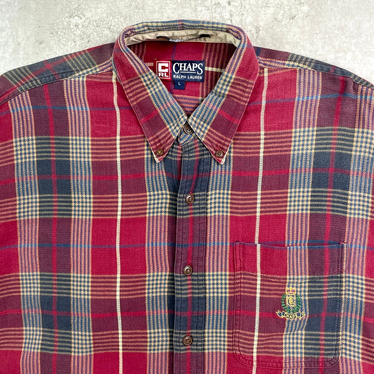 ■90年代 CHAPS Ralph Lauren チャップス ラルフローレン マドラスチェックシャツ ネルシャツ メンズXL相当 古着 90s アメカジ VINTAGE ヴィンテージ ワンポイントロゴ刺繍 ボタンダウンシャツ レッド ネイビー ブルー【長袖シャツ】/マルチカラー
