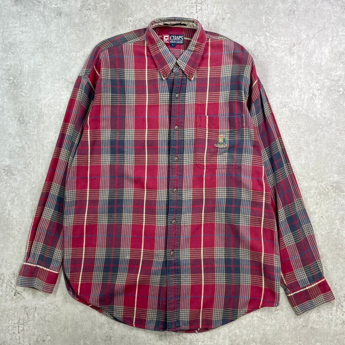 90年代 CHAPS Ralph Lauren チャップス ラルフローレン タータンチェックシャツ ネルシャツ メンズXL相当 古着 90s アメカジ VINTAGE ヴィンテージ ワンポイントロゴ刺繍 ボタンダウンシャツ レッド ネイビー ブルー【長袖シャツ】/マルチカラー【VS30-4】
