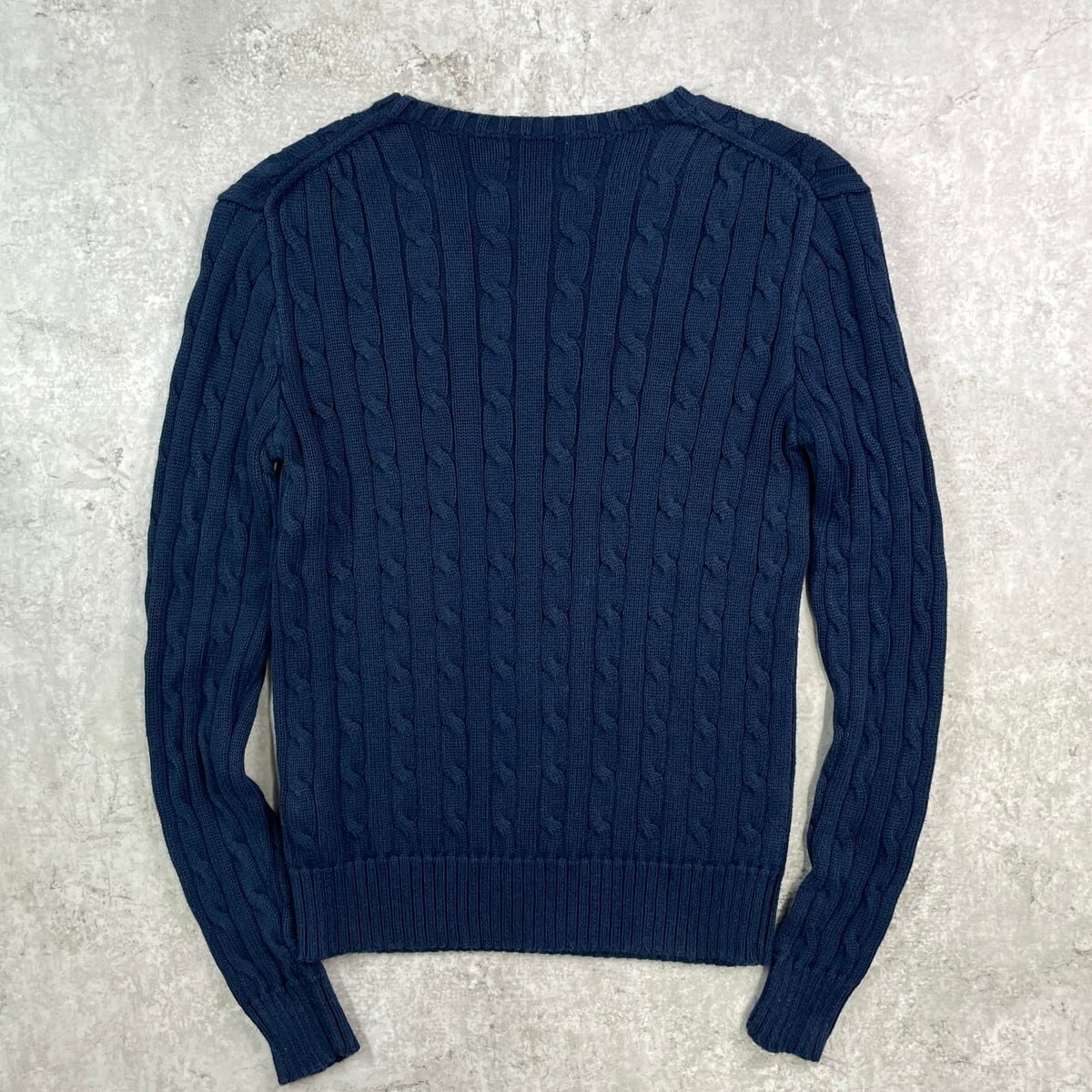 ■POLO RALPH LAUREN ポロラルフローレン ケーブルニットセーター レディースXS 古着 ワンポイントロゴ刺繡 アメカジ 紺色【ニットセーター】/ネイビー