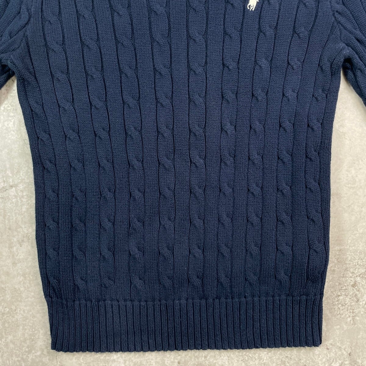 POLO RALPH LAUREN ポロラルフローレン ケーブルニットセーター レディースXS 古着 ワンポイントロゴ刺? アメカジ 紺色【ニットセーター】/ネイビー