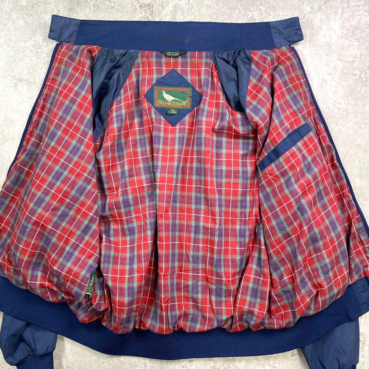 ■90年代 FIELD & STREAM スイングトップ メンズXL 古着 90s ヴィンテージ VINTAGE ドリズラージャケット チェックライナー フェードネイビー 紺色【コットンジャケット】/ネイビー