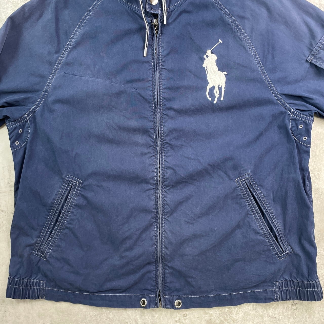■Polo by Ralph Lauren ポロバイラルフローレン ビッグポニー スイングトップ メンズL 古着 スポーツジャケット コットンパーカー フェードネイビー 紺色【ブルゾン・ジャケット】/ネイビー
