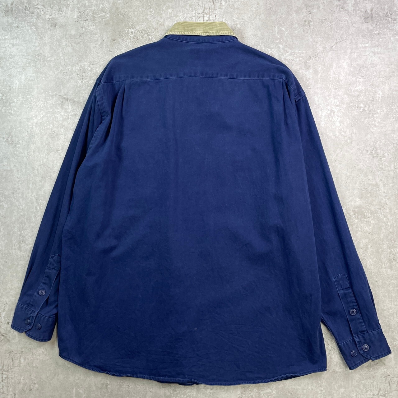 ■80年代 PoLo RALPH LAUREN ラルフローレン コーデュロイ襟 長袖 コットンシャツ メンズ2XL相当 古着 80s VINTAGE ヴィンテージ ビッグサイズ 大きいサイズ 紺色【長袖シャツ】/ネイビー