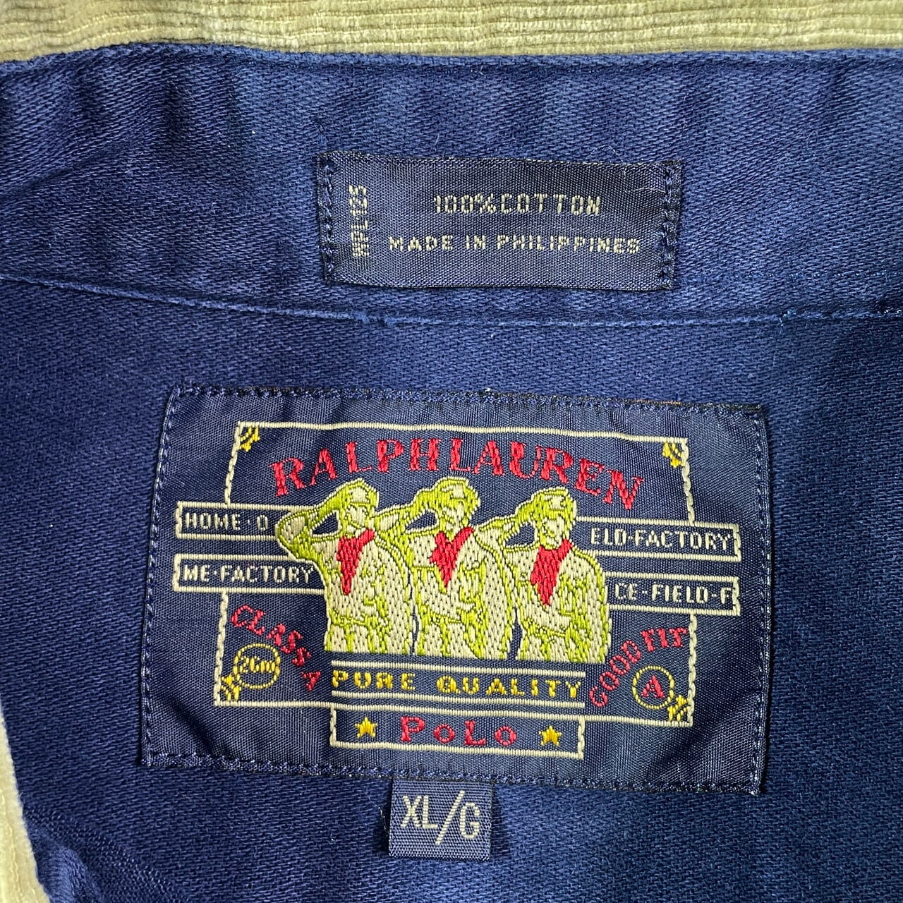 80年代 PoLo RALPH LAUREN ラルフローレン コーデュロイ襟 長袖 コットンシャツ メンズ2XL相当 古着 80s VINTAGE ヴィンテージ ビッグサイズ 大きいサイズ 紺色【長袖シャツ】/ネイビー